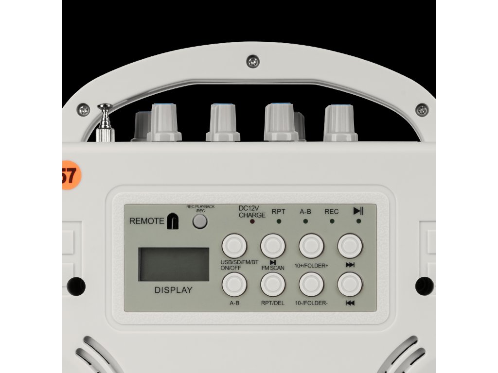 Uređaj ima ulaz za jack 6,5 mm za povezivanje dinamičkog žičanog mikrofona i AUX ulaz za dodatne izvore zvuka. Izlaz za zvučnik (8 Ohma) omogućuje povezivanje vanjskog ozvučenja.