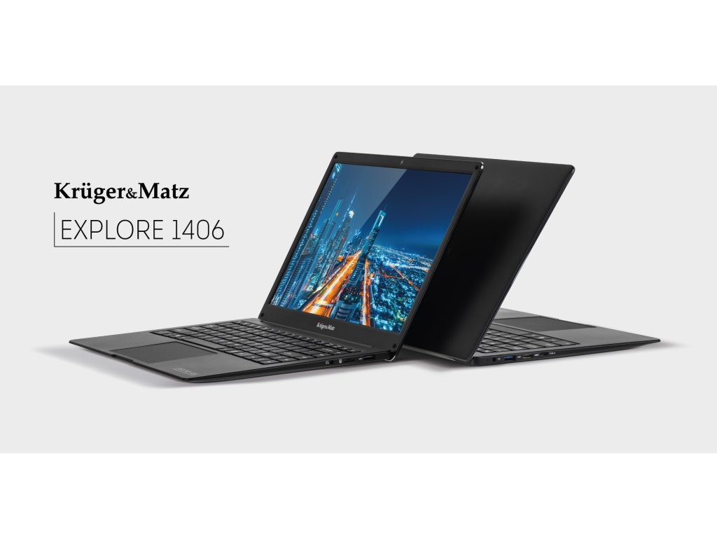 Elegantno kućište ultrabooka Kruger&Matz Explore 1406 u mat crnoj boji daje mu eleganciju koja se savršeno uklapa u uredske prostore i kućne interijere. Važno je da je uređaj vrlo tanak i lagan, što svakako povećava udobnost prilikom transporta.