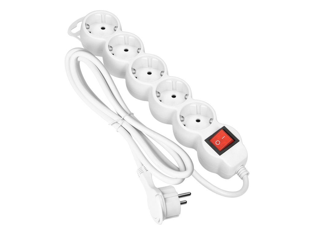 Produžni kabel 3m, 5 utičnica, prekidač, bijeli