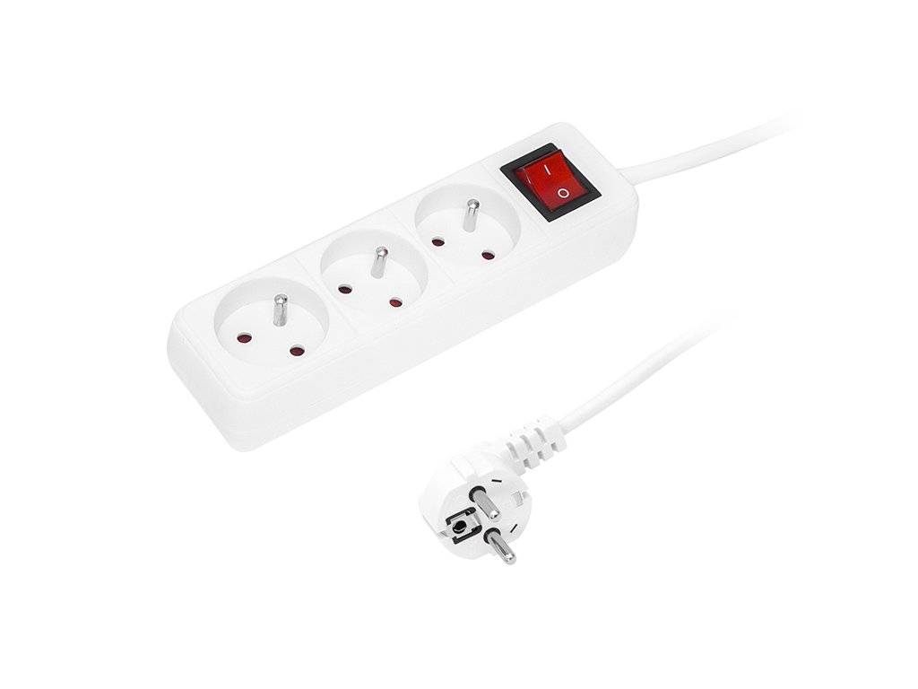 Produžni kabel bijeli 3m s prekidačem 3 utičnice |
