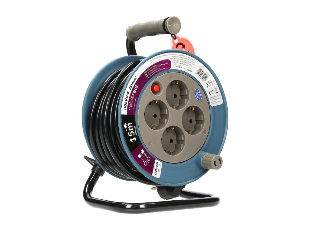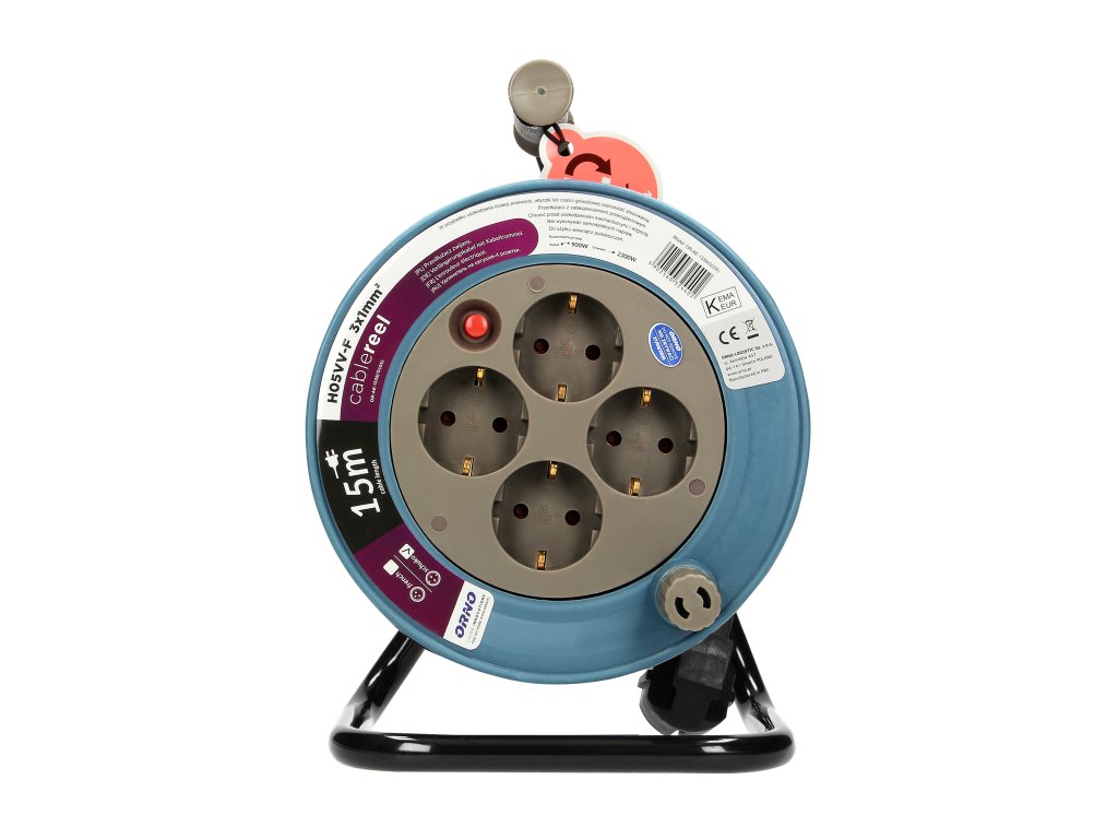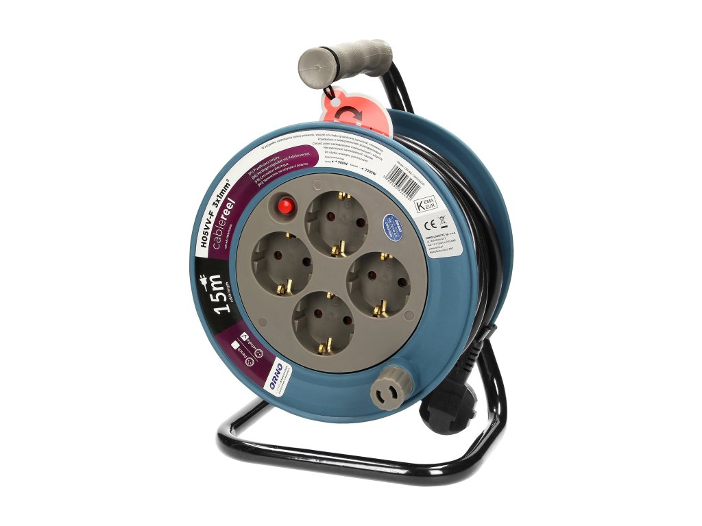 Produžni kabel na kolutu, 15m, sivi, 4 utičnice