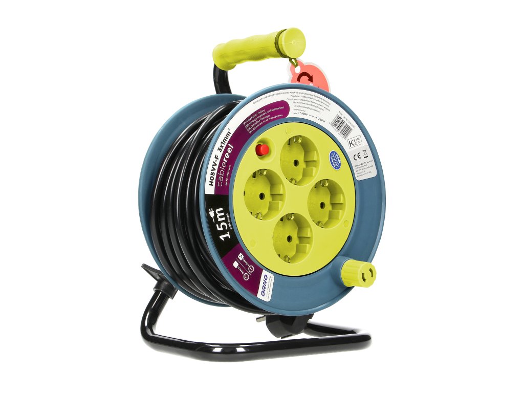 Produžni kabel na kolutu 15m, 4 utičnice, lime