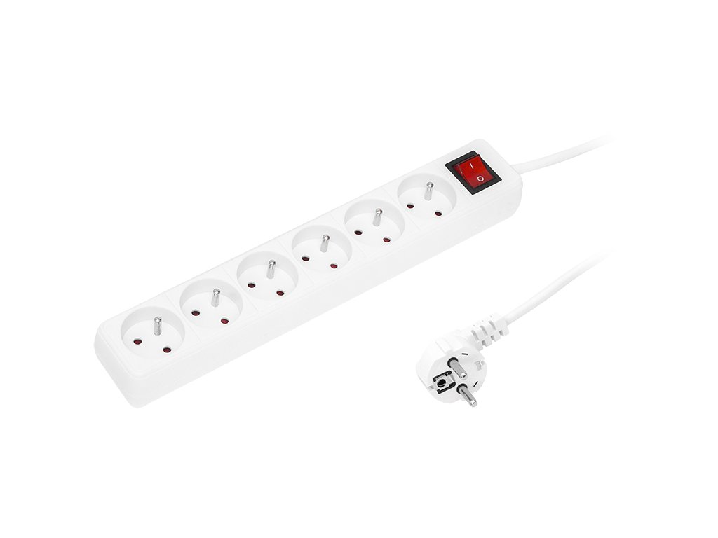 Mrežni produžni kabel PR-670WSP s kutnom mrežnom utičnicom, 6 uzemljenih utičnica i prekidačem.