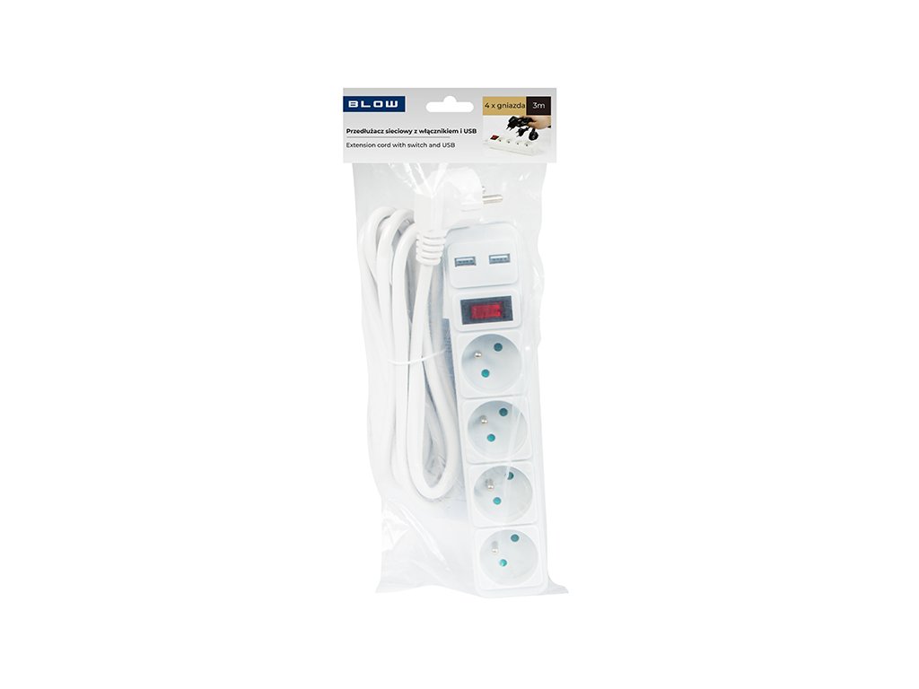 Produžni kabel s USB, 4 utičnice, 3m, bijeli