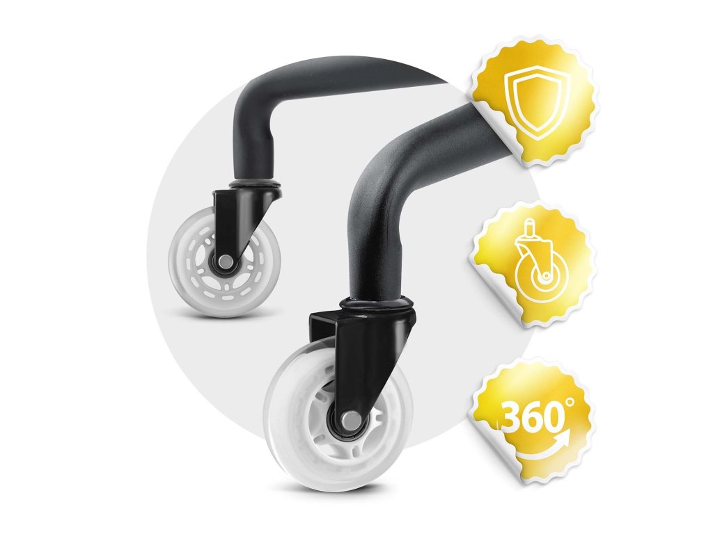 Čak ni osjetljivi podovi neće biti izgrebani! Osim toga, kotačići se kreću vrlo tiho i ne klize na terakoti niti na tepihu.