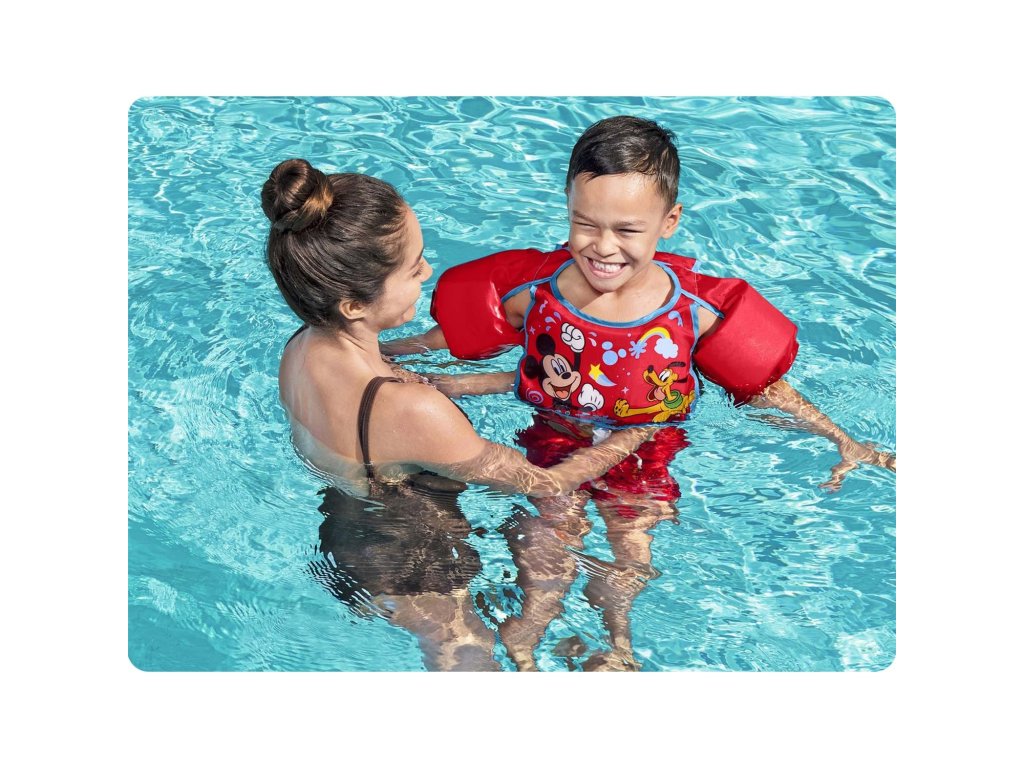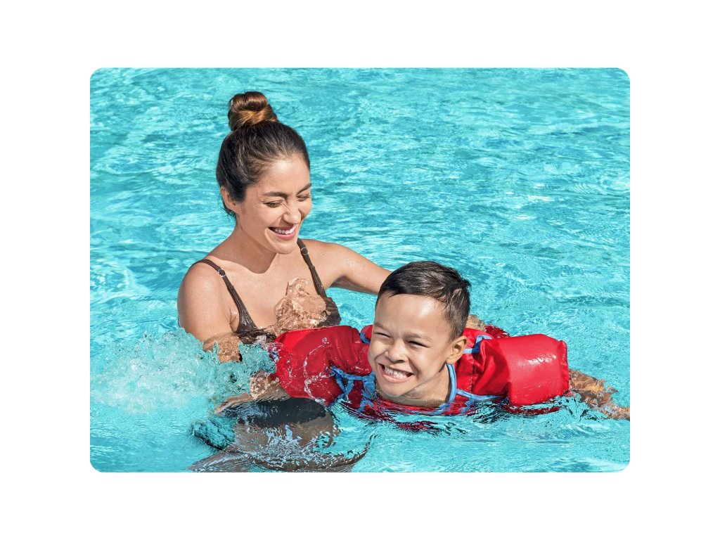Pri početku učenja plivanja ne zaboravite na odgovarajuću opremu za vaše dijete. Napuhljivi prsluk marke Bestway za djecu s ugrađenim ovratnikom izvrsno služi pri prvom kontaktu s vodom.