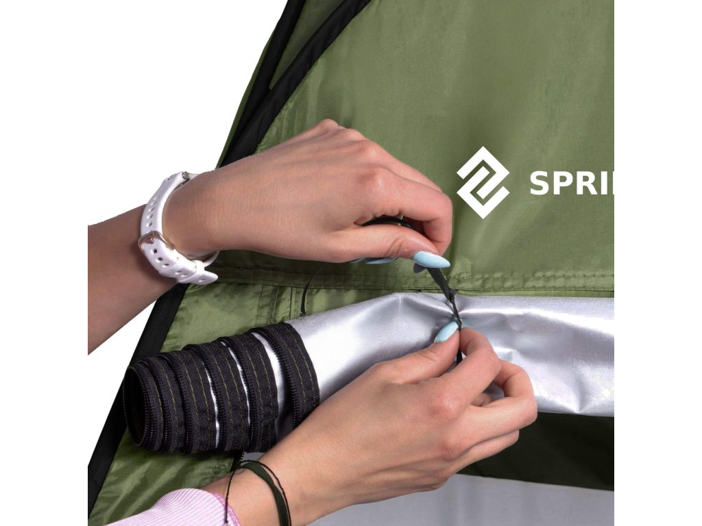 - Na vrhu u svakom kutu zida 4 pričvrsne točke kroz koje ćeš provući užad i pričvrstiti svlačionicu, kako bi stajala stabilno i ne ljuljala se na vjetru