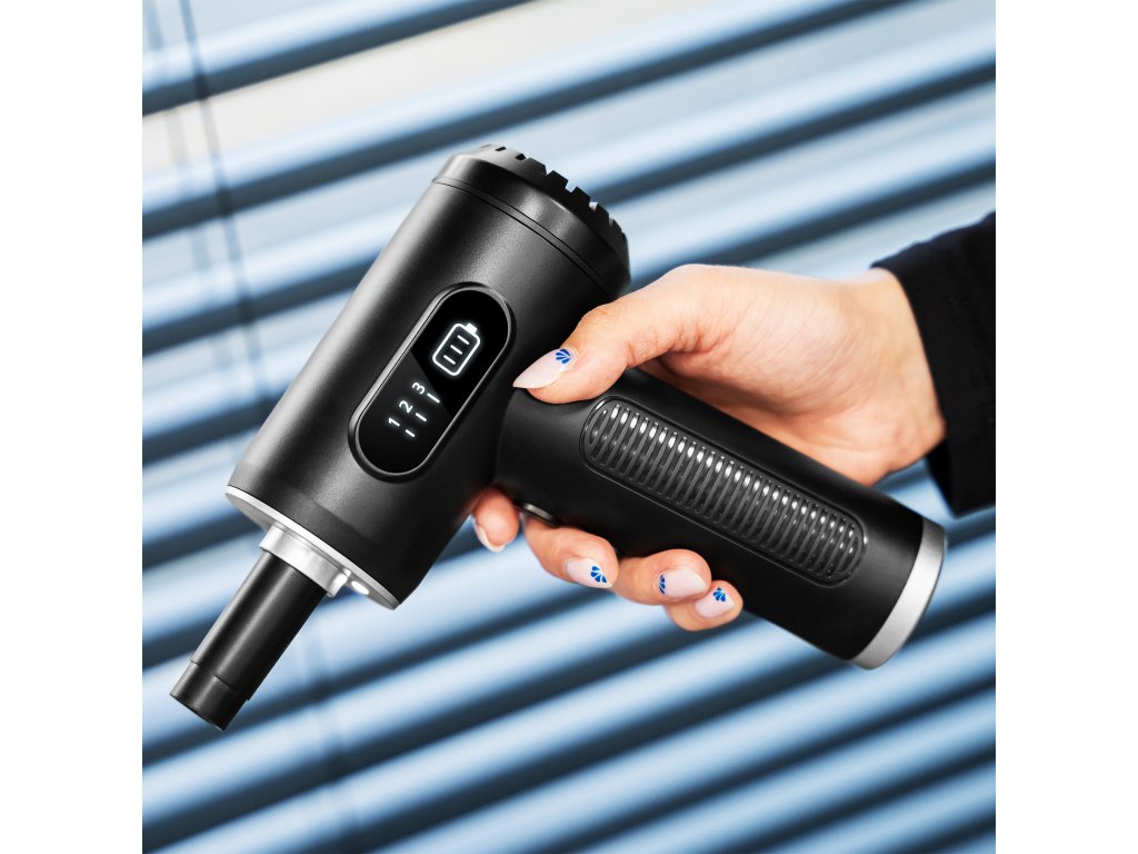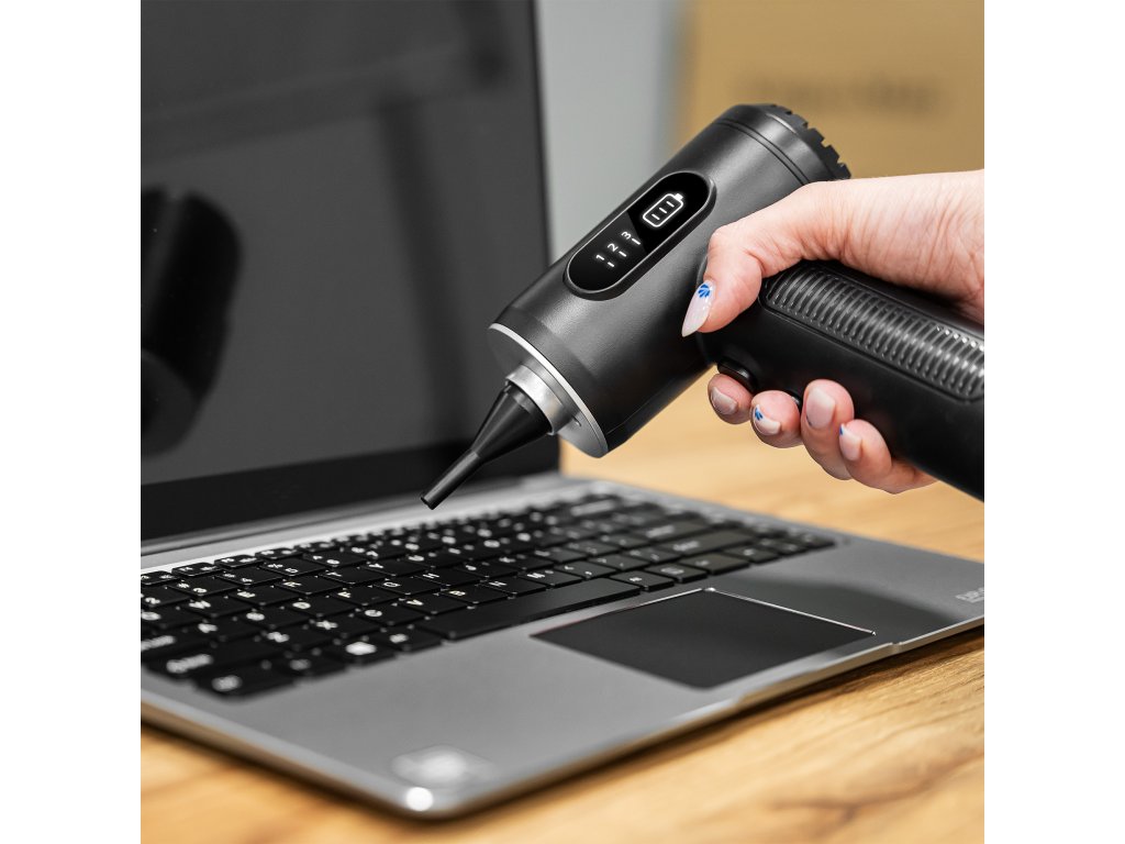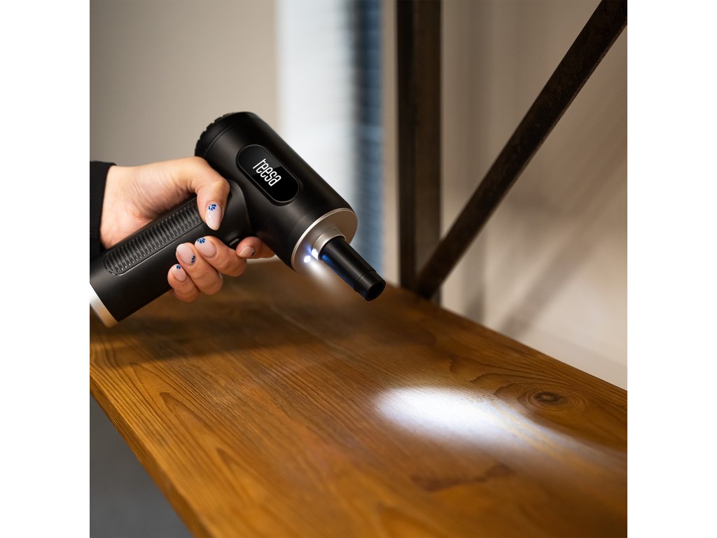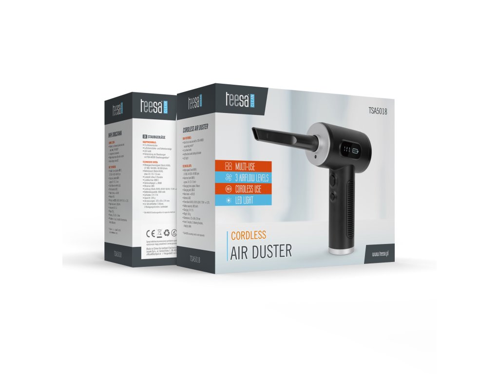 Tri razine snage Kompresor Teesa vam pruža potpunu kontrolu. Zahvaljujući trima razinama puhanja lako prilagodite snagu rada zadatku - od preciznog čišćenja tipkovnice do intenzivnog puhanja prašine iz kutova – jedan uređaj, mnogo mogućnosti.