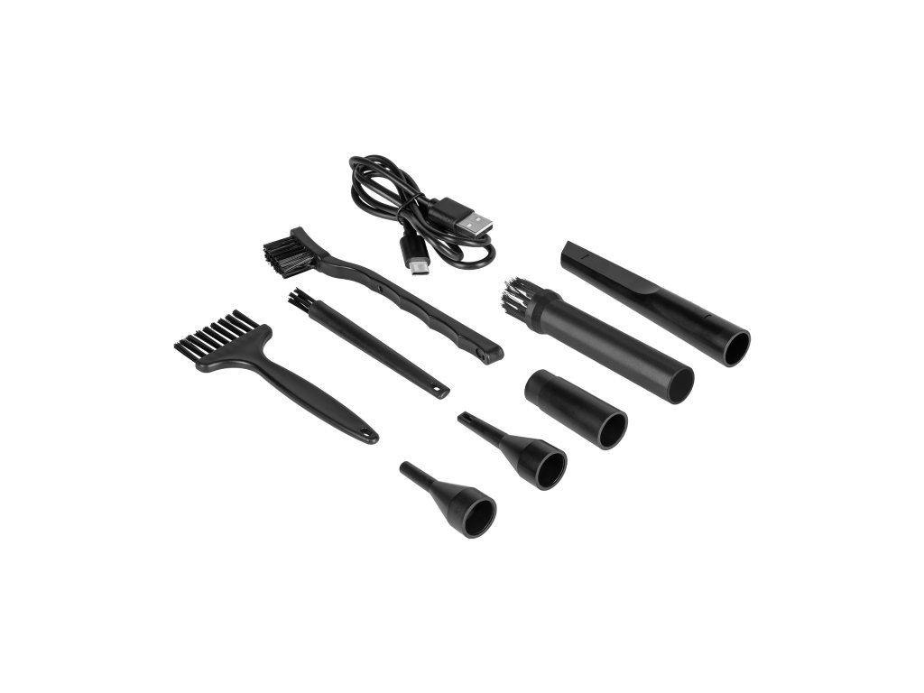 Spreman za svaki posao U kompletu ćete pronaći čak 5 mlaznica, 3 praktične četkice i USB-C kabel – sve što vam treba za sveobuhvatno čišćenje. Zahvaljujući raznim nastavcima prilagodit ćete uređaj mnogim zadacima: od tipkovnica, preko elektronike, do teško dostupnih kutaka. A ako želite proširiti funkcionalnost, jednostavno kupite nastavak TSA-AKC80 i dobit ćete punopravni usisavač.