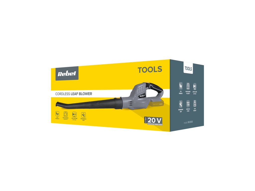 Akumulatorski puhač Rebel Tools savršen je alat koji će vam dobro doći pri jesenskom čišćenju vašeg doma. Zahvaljujući brzini strujanja zraka 245 km/h lako i brzo uklonit ćete lišće, zrnca pijeska i vlati trave u vrtu. Pogodno upravljanje uređajem jamči masa ne prelazi 2 kg, kao i ergonomski dizajn, koji ne opterećuje ruku tijekom rada.