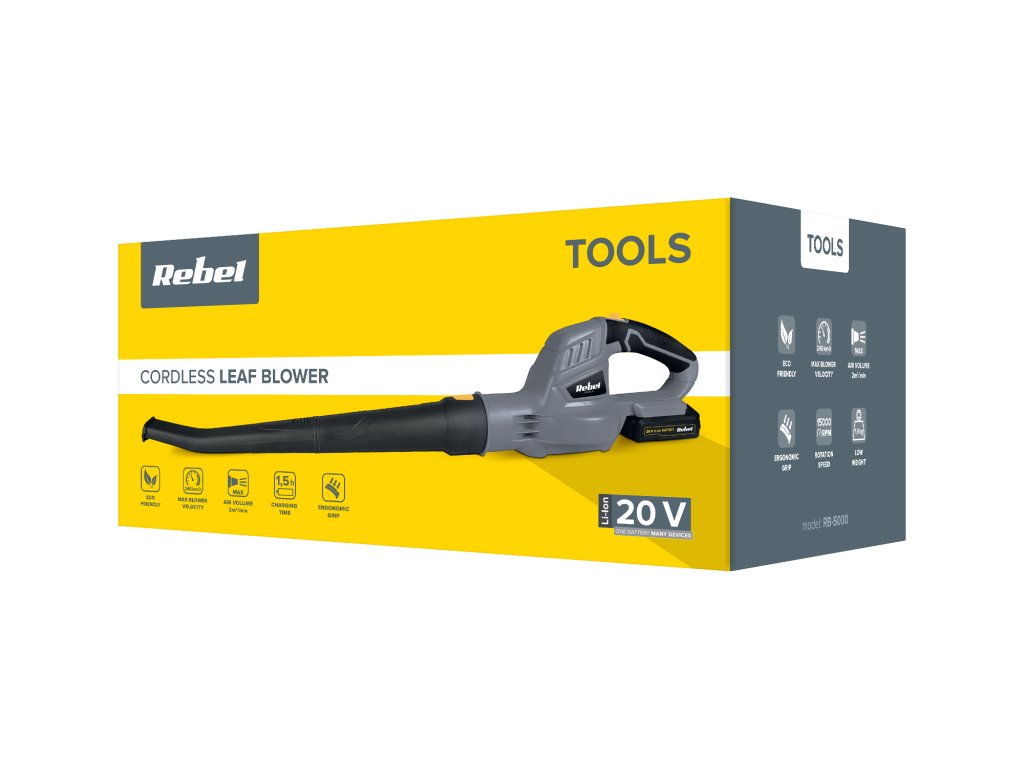 Akumulatorski puhač Rebel Tools savršen je alat za jesensko čišćenje. Zahvaljujući brzini zraka od 245 km/h , možete lako i brzo ukloniti lišće, zrna pijeska i vlati trave iz vrta. Udobno rukovanje osigurava težina maksimalno 2 kg i ergonomski dizajn koji ne opterećuje ruku tijekom korištenja.