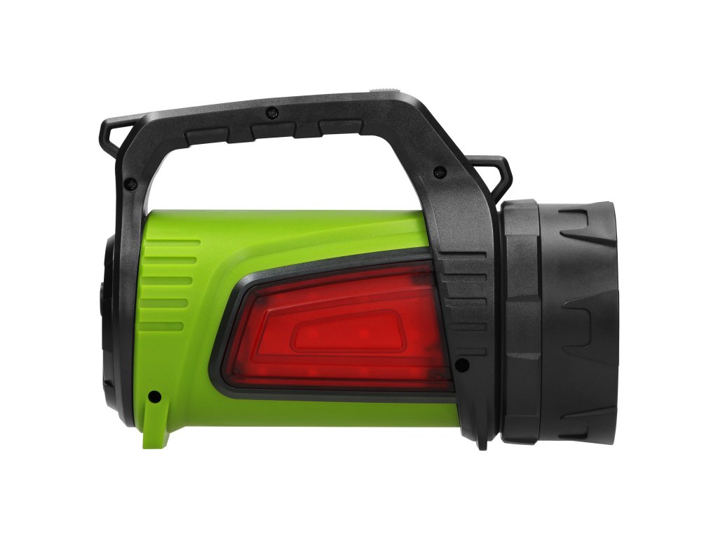 Ova svjetiljka s punjivom baterijom kapaciteta 4000 mAh dizajnirana je za profesionalnu ili kućnu upotrebu. Opremljena je s 3 izvora svjetla - modernim 10W LED reflektorom, bočnom svjetlosnom pločom i crvenim svjetlom za hitne slučajeve. Osim toga, proizvod ima indikator stanja baterije i ##powerbanku (za punjenje vanjskih uređaja iz svjetiljke). Ima 7 načina svjetla: glavni reflektor - jako svjetlo, srednje svjetlo, pulsni način rada; lijeva bočna ploča - jako svjetlo, srednje bijelo svjetlo; desna bočna ploča - jako svjetlo, crveni pulsni način rada.Additional parameters