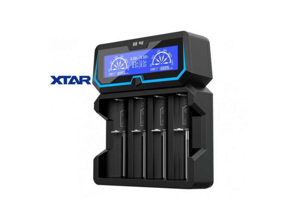 Xtar X4 je univerzalni USB punjač s četiri utora za punjive Li-ion/Ni-MH baterije, koji sadrži najnovije tehnologije. Višebojni LCD zaslon pruža lako čitljive informacije, kao što su napon baterije, struja punjenja, procijenjeni postotak, koliko % je baterija napunjena i koliko mAh je napunila. X4 na zaslonu prikazuje i koliko mAh je trenutno ušlo u bateriju. Služi za bolje procjenjivanje (predodžbu) koliko će još vremena trebati dok se potpuno ne napuni. S funkcijom aktivacije 0V, X4 nudi mogućnost oživljavanja Li-ion baterija, čime se štedi vrijeme i novac. Napajanje je osigurano preko Micro-USB porta ili el. kabela na 230V. Tako je lako puniti Li-ion/Ni-MH baterije bilo gdje i jednostavno. Dovoljno je samo priključiti na USB sučelje, npr. PC ili priključiti el. kabel na 230V u el. mrežu (od broja mA ulaznog izvora el. energije, ovisi i veličina struje punjenja punjača). Xtar X4 također može biti korišten kao rezervni izvor el. energije - Power bank. Punjenje vanjskih USB uređaja odvija se preko napunjene Li-ion baterije, koja je umetnuta samo u utor br. CH4. Pune 3,6/3,7V Li-ion/IMR/INR/ICR: 14500, 14650, 16340, 17335, 17500, 17670, 18350, 18490, 18500, 18650, 18700, 20700, 21700, 22650, 25500, 26650 baterije i Ni-MH punjive baterije 1,2V Ni-MH/Ni-CD: AAAA, AAA, AA, A, SC, C. Punjači XTAR koriste tehnologije, kao što su zaštita protiv pregrijavanja, zaštita od kratkog spoja i polariteta, zaštita od obrnutog umetanja. Mogu automatski promijeniti odgovarajuću struju punjenja ovisno o unosu. Koriste visokoučinkovitu inteligentnu tehnologiju koja značajno smanjuje gubitke energije. Zaštićen je od oštećenja nepravilnim umetanjanjem baterije. Kućište punjača je izrađeno od PC i ABS otpornog vatrootpornog materijala s izvrsnim odvođenjem topline i visokom otpornošću na temperaturu. Konstantna struja i napon punjenja držat će bateriju trajno i stabilno. Punjenje baterije odvija se na 4,2V za Li-ion baterije i za Ni-HM/Ni-CD 1,45V. Automatski se zaustavlja po završetku punjenja i resetira funkciju punjenja.