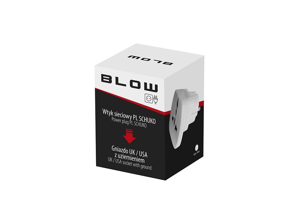 Adapter za električne utičnice Blow omogućuje spojiti električne uređaje s engleskim utikačem u utičnice koje se nalaze u Poljskoj i Europskoj uniji.