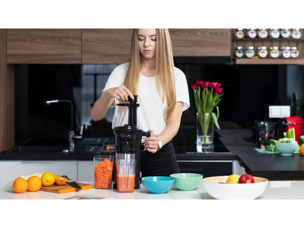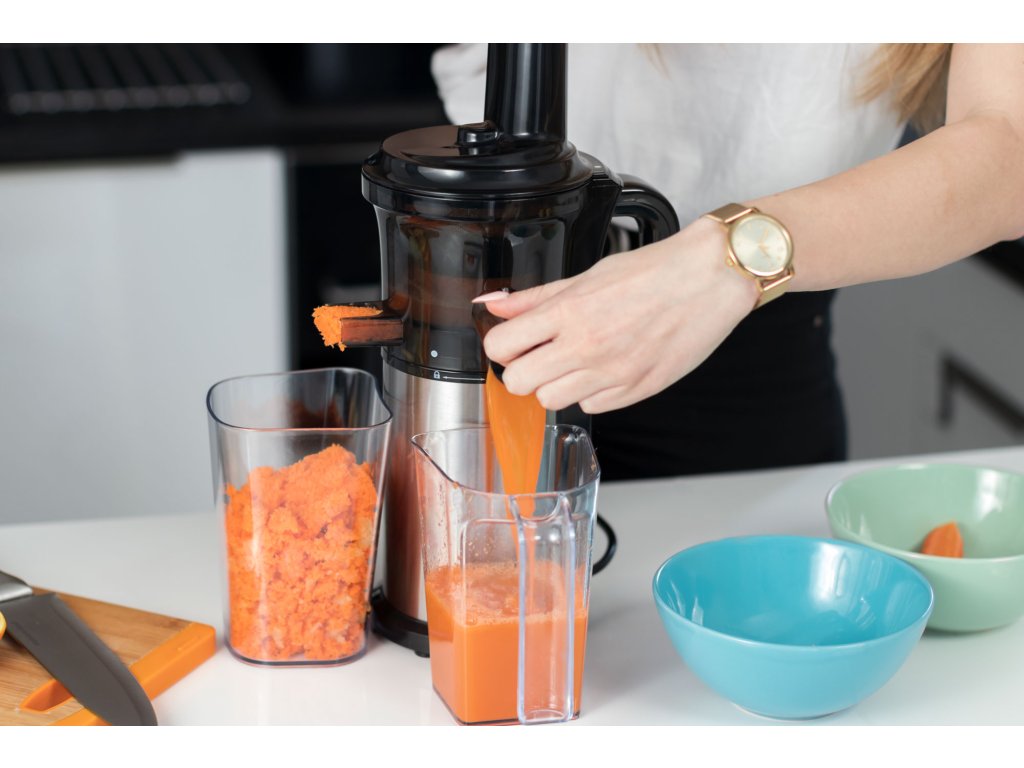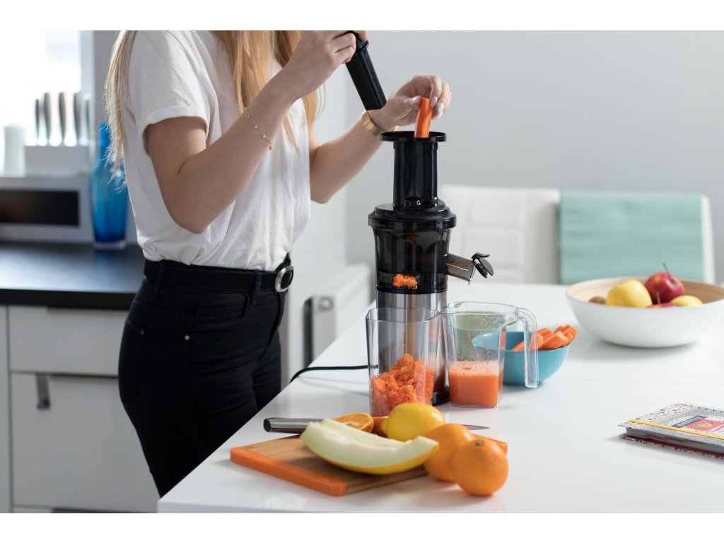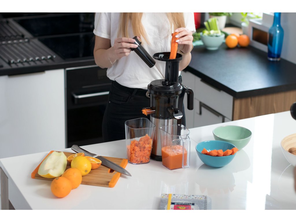 Sustav s jednom vijkom, snaga 200 W i raspon okretaja 40-65 okr/min jamče visoku učinkovitost, zahvaljujući kojoj ćete uvijek iscijediti maksimalnu količinu soka. Prednost je povratni hod, koji će vam pomoći odblokirati uređaj ako se tijekom rada blokira, primjerice, koštica voća.