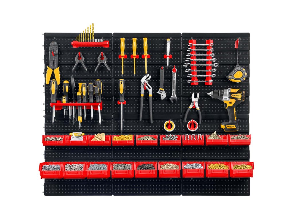 Veliki set! 6 perforiranih modularnih panela i do 43 dodatne posudice, držače, police i kuke.
