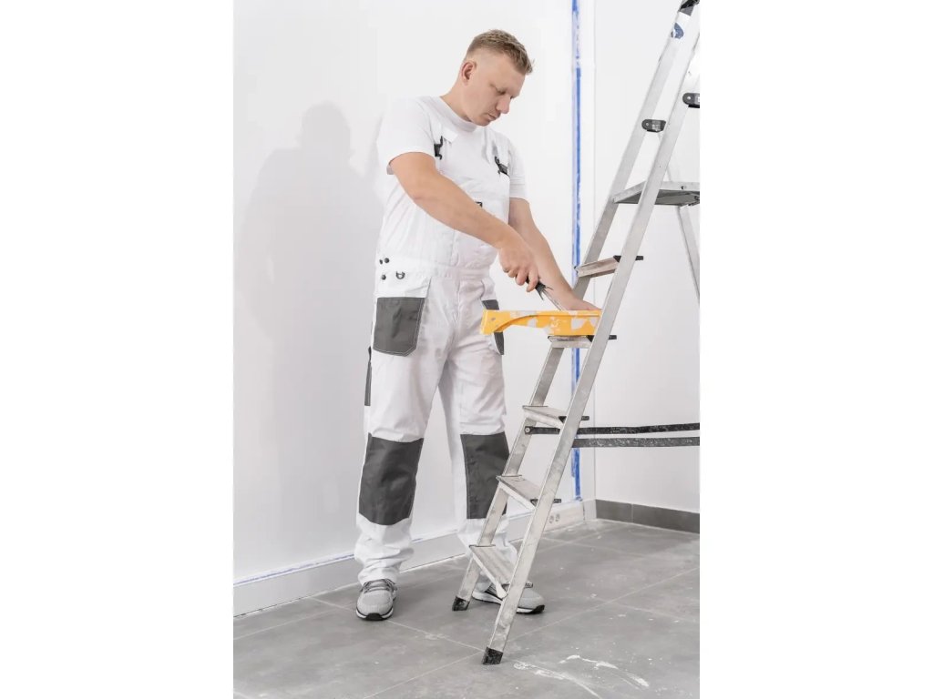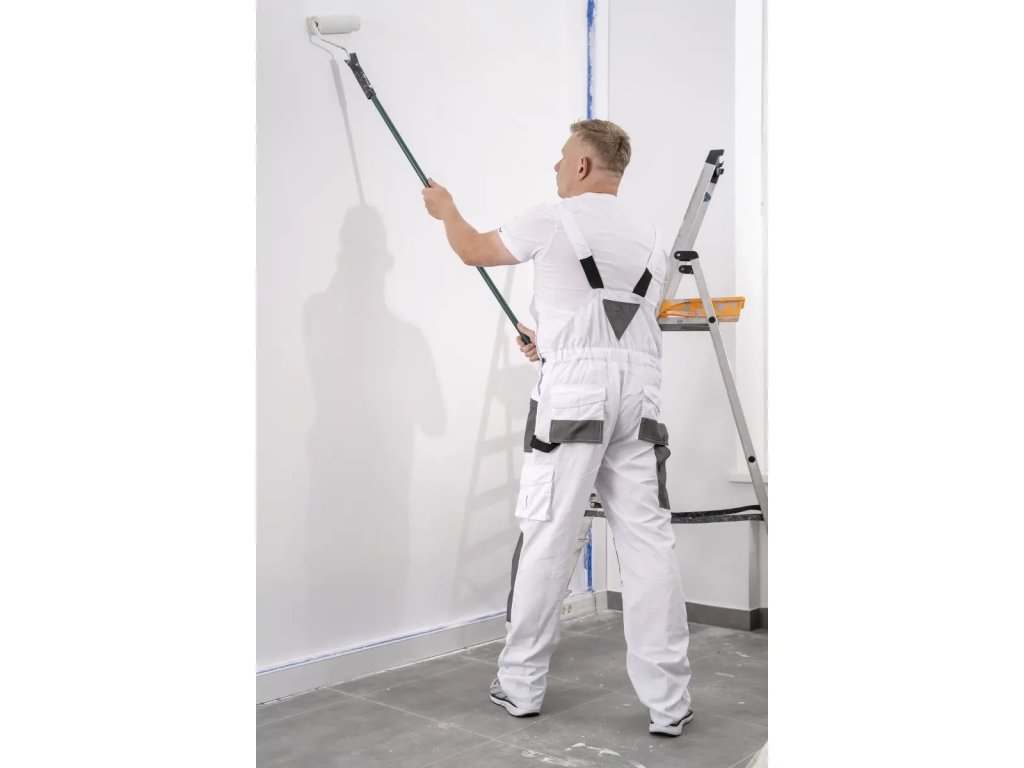 Zaštitne hlače WHITE LINE izrađene su od mješavine poliestera i pamuka. Materijal s gramaturom od 190 g/m2 osigurava dobru cirkulaciju zraka i slobodu kretanja. Dodatno ojačanje u području koljena. Funkcionalni džepovi uključujući džep za pametni telefon. Hlače su trostruko prošivene za veću izdržljivost. Zahvaljujući bijeloj boji, hlače su posebno prikladne za slikare i štukatore. Nisu prikladne za vruće dane.
