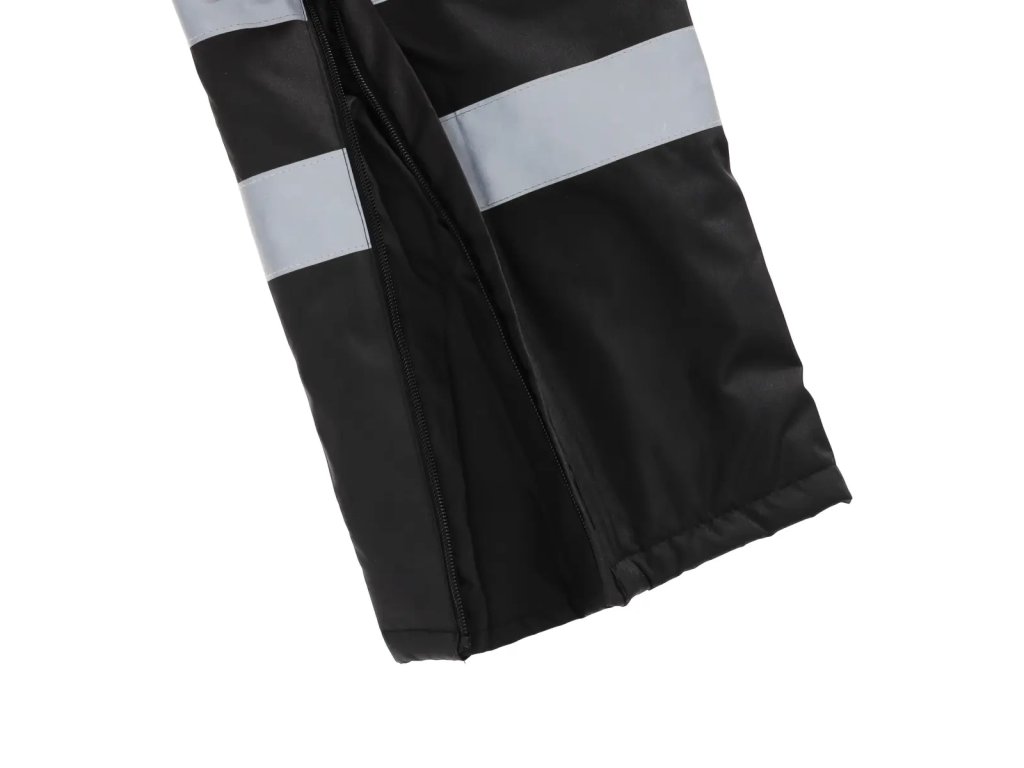 Reflektirajuće termo hlače izrađene su od Oxford 300D tkanine s težinom od 180 g/m?. Tkanina je otporna na vjetar i vodoodbojna do 2000 mm. Osim toga, koriste se vodootporni šavovi. Hlače imaju prošivenu poliestersku podstavu s težinom od 180 g/m? i taft podstavu s unutarnje strane. Hlače imaju elastični struk i visok stražnji umetak. Praktični i funkcionalni džepovi i omča za čekić. Hlače imaju reflektirajuće trake na nogavicama, kao i dodatne trake na pojasu, koje osiguravaju vidljivost u zahtjevnim uvjetima ili nakon mraka. Trake su zapečaćene, široke 5 cm i certificirane prema normi EN20471. Dostupne veličine od S do 3XL.