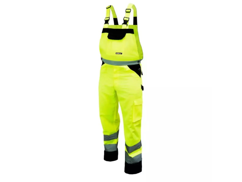 Vrtlarske hlače izrađene su od mješavine poliestera i pamuka s gramaturom od 250 g/m2. Hlače imaju elastičan pojas i podesive naramenice s ušivenim gumicama. Hlače imaju 8 praktičnih i funkcionalnih džepova te petlju za remen za čekić. Hlače imaju reflektirajuće trake na nogavicama i dodatno na pojasu, što osigurava sigurnost u teškim uvjetima ili nakon kiše. Dostupne veličine od S do 2XL. Žuta boja.