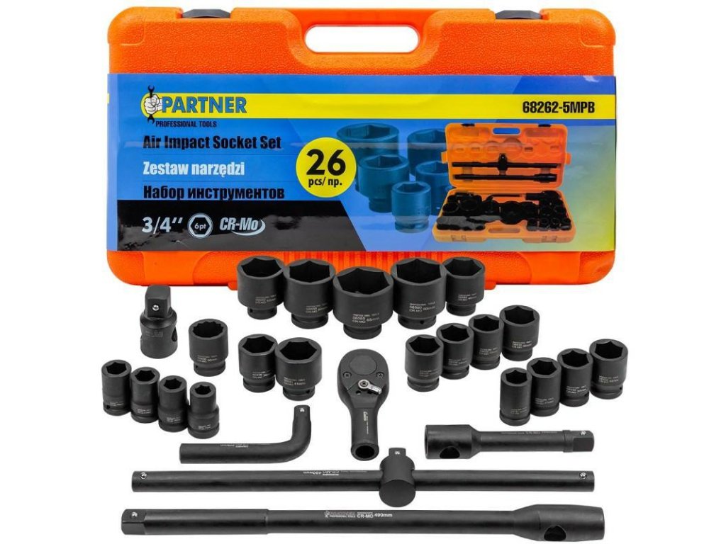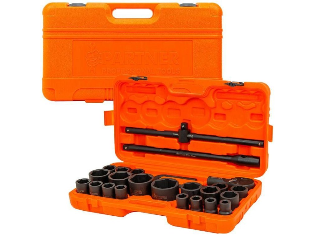 Profesionalni set ključeva 3/4"+1". Idealno za velika teretna vozila i poljoprivredne strojeve, izrađeno od čvrstog materijala, što se odlično odražava na njegovoj otpornosti. Neophodan u svakoj auto radionici, ključevi ove veličine pomažu pri popravcima teretnih vozila ili poljoprivrednih strojeva. Idealno za otpuštanje ili zatezanje velikih vijaka. Svi ključevi i adapteri su u praktičnoj kutiji. Set sadrži 26 dijelova. Kutija jamči siguran transport bez mogućnosti samovoljnog otvaranja.