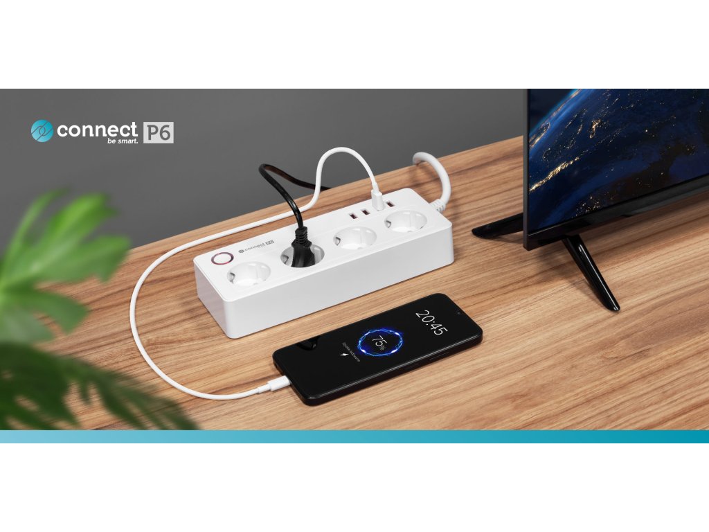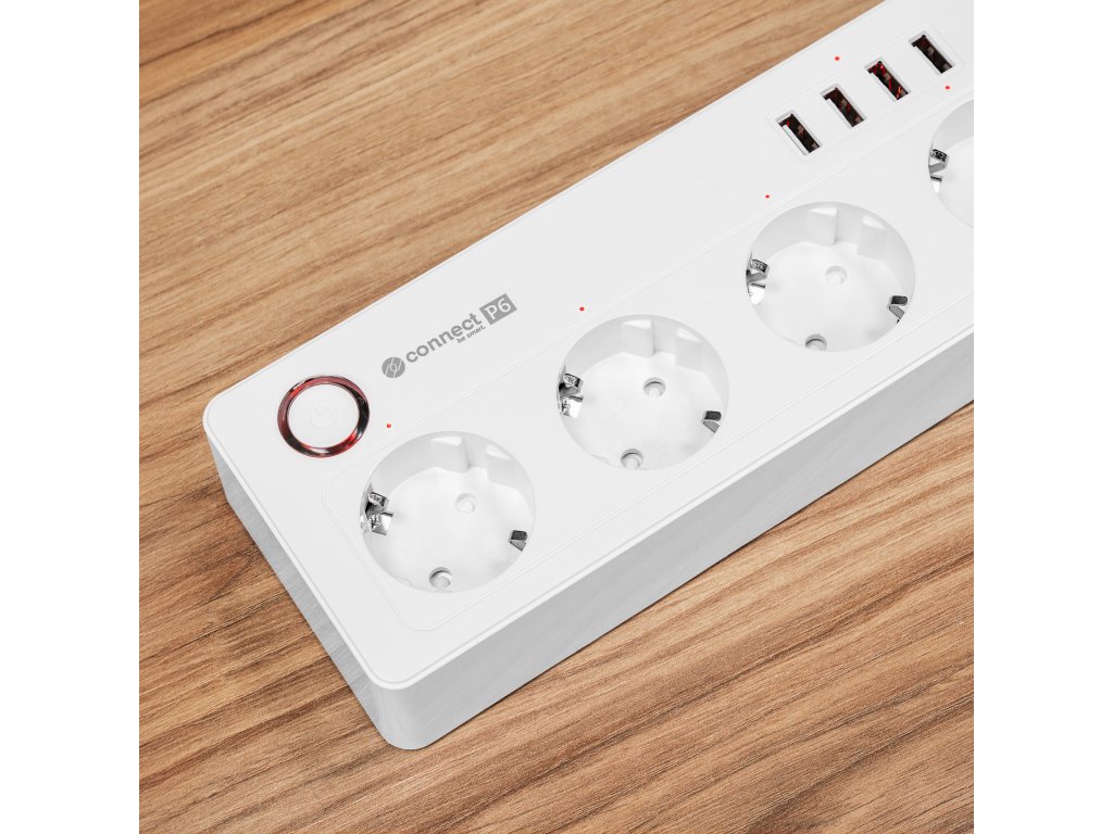 Inteligentni izvor napajanja wifi Connect P6 opremljen je s četiri njemačke utičnice koje omogućuju povezivanje različitih uređaja – od računala, preko lampi, do RTV uređaja. Svakom utičnicom možete upravljati pojedinačno, štedeći tako energiju i povećavajući sigurnost.