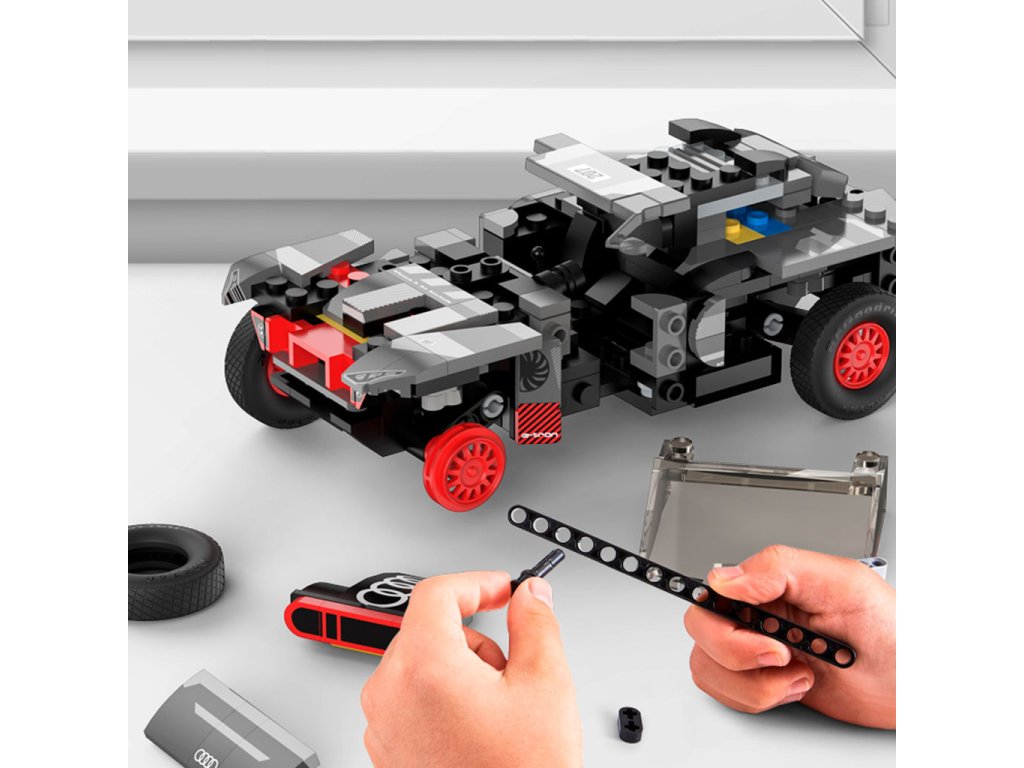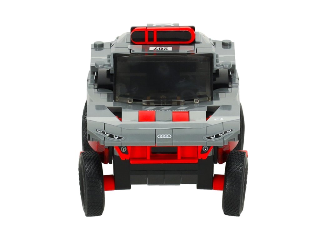 Set od 376 ciglica omogućuje sastavljanje kultnog sportskog vozila Audi RS Q e-tron u mjerilu 1:30. Na taj način gotov model postaje ne samo atraktivna igračka, već i sjajan dekorativni element, idealan za izlaganje na polici svakog ljubitelja automobila.