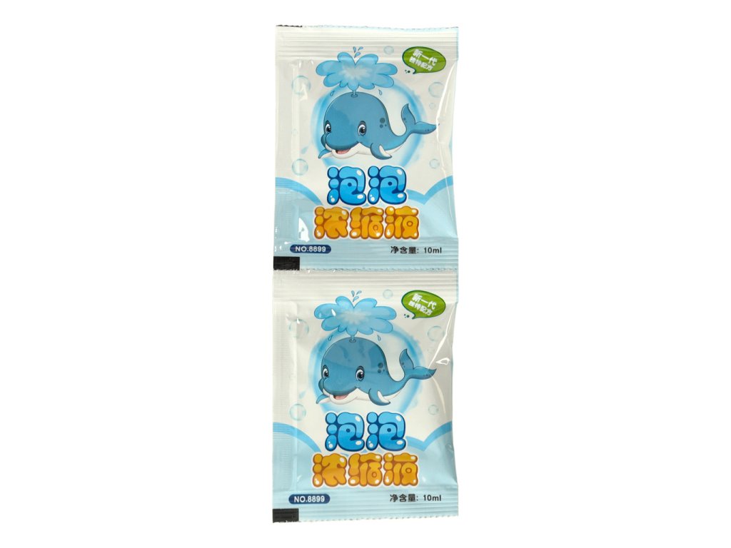 U setu ćete pronaći spremnik za tekućinu s mjehurićima koji se instalira u stroj, kao i dvije vrećice s pripremljenom tekućinom. Ova će zaliha potrajati satima zabave!
