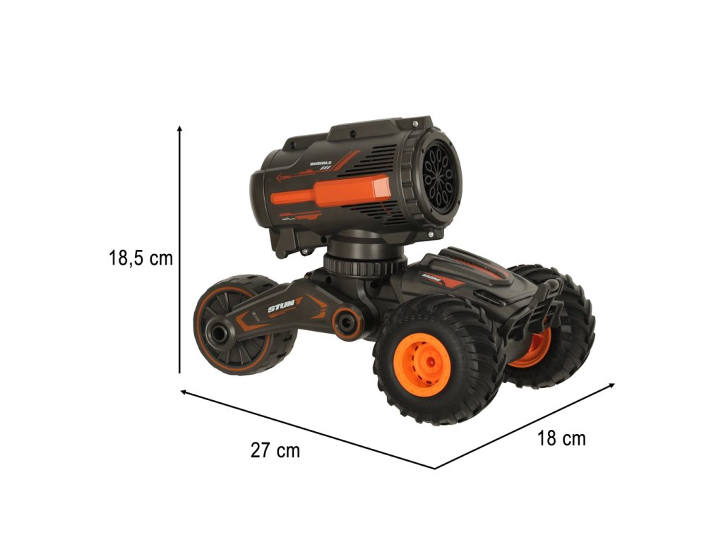 RC auto za ispuštanje mjehurića sapunice je jedinstven proizvod koji će vaše dijete sto posto oduševiti. Samo pritisnite jedno dugme i iz stroja na stražnjoj strani auta počet će izlaziti mali krugovi sapunice. Ali auto može mnogo više od toga! Vožnja u četiri smjera za njega nije nikakav problem. Ni neravan teren nije prepreka - dvije gumene gume sprijeda omogućuju mu da prevlada bilo kakvu prepreku na putu.