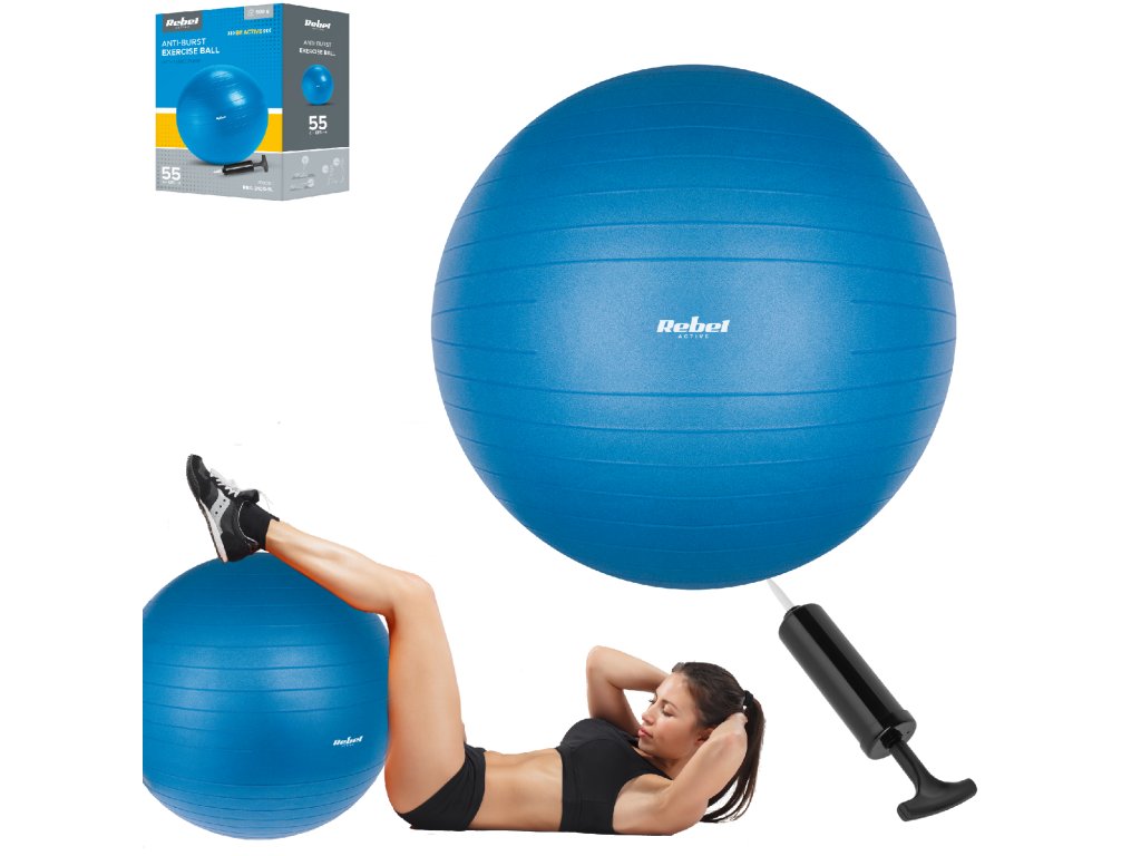 Rehabilitacijska gimnastička lopta 55 cm s ručnom pumpom, plava boja, REBEL ACTIVE