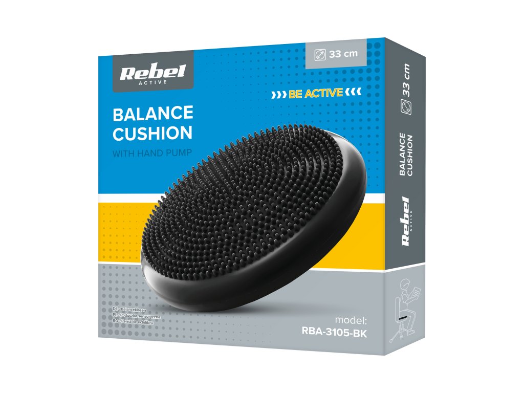 Rehabilitacijski senzorički jastuk 33cm + pumpa, crna boja, REBEL ACTIVE