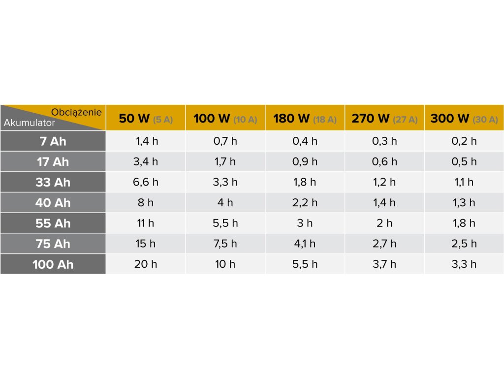 Da biste osigurali najvišu kvalitetu rada izvora napajanja za hitne slučajeve KEMOT, morate odabrati odgovarajuću bateriju za nju. Optimalna baterija može se odabrati pomoću približne formule: opterećenje 100 W = potrošnja 10 A iz baterije.