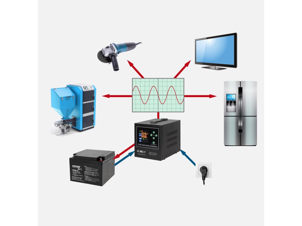 Pitate se koji UPS odabrati za plinski kotao, ili vas možda zanima UPS za peć na eko-grašak ili pelete Serija uređaja KEMOT PROsinus savršeno odgovara kao hitni izvor za pumpe centralnog grijanja ili pumpe u kaminima, kao i indukcijske motore ili na primjer uređaje za automatizaciju instalacije koji koriste toplinske konvektore i sve uređaje koji su izuzetno osjetljivi na najmanje promjene u obliku napona. Njihova prednost je čista sinusna linija izlaznog napona (napajajuće opterećenje), zahvaljujući čemu uređaj osigurava stabilan rad i sprječava pregrijavanje indukcijskog opterećenja. Zajedno s 12V baterijom čine kompletan uređaj za napajanje s jamstvom 230 VAC.