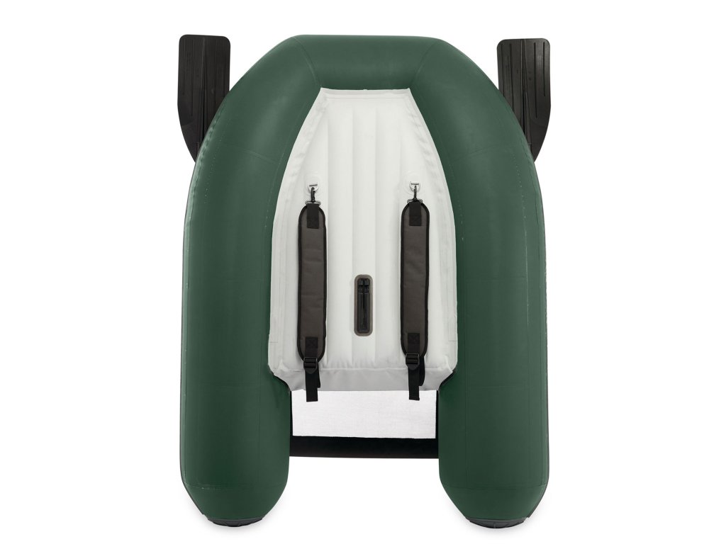 Čamac se može nositi na leđima pomoću priloženih remena. Osim toga, u kompletu ćeš pronaći zaseban ruksak s držačima za vesla.