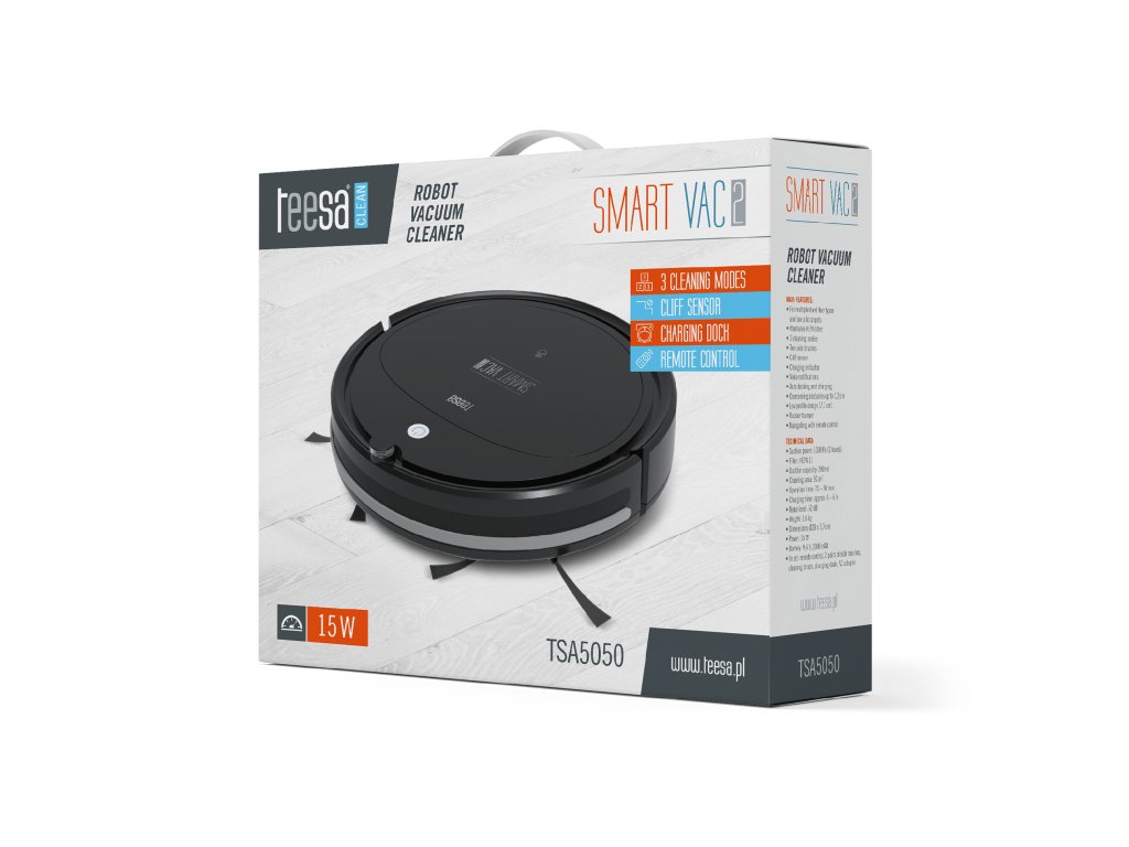 Robot SMART VAC 2, baš kao i svi roboti za čišćenje, dizajniran je da vam pomogne očistiti svaki kutak vašeg doma. Uređaj ima nizak profil, tako da lako čisti pod ispod niskog namještaja. Osim toga, automatski usisavač Teesa dobro čisti većinu vrsta tvrdih podova i tepiha s kratkim vlaknima.