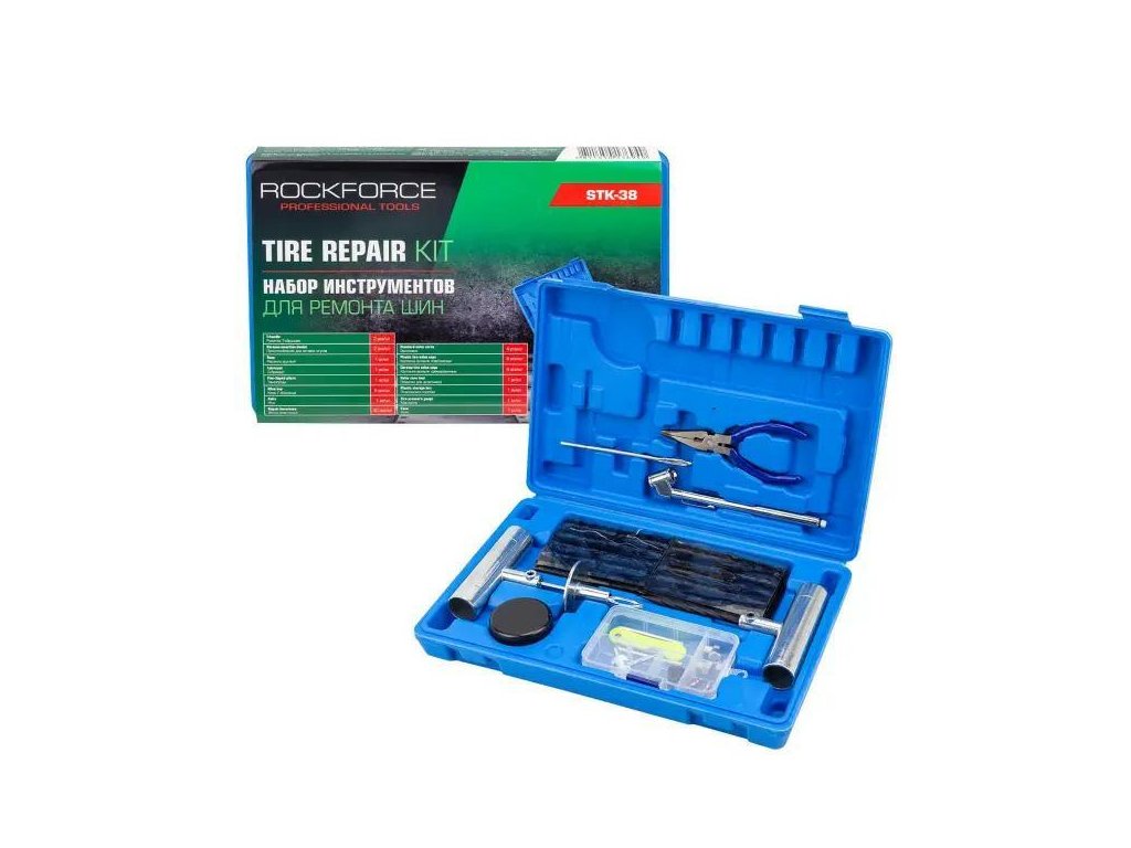 Profesionalni set za popravak guma ROCKFORCE je kompleksno rješenje za brzu i učinkovitu popravku probušenih bezdušnih guma – kako u osobnim automobilima, SUV-ima, tako i u lakim komercijalnim vozilima. Zahvaljujući bogatom priboru omogućuje mnoge popravke bez potrebe za demontažom kotača ili posjetom radionici.