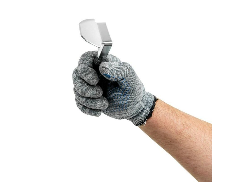 Oštrica je opremljena udobnom, protukliznom drškom, koja osigurava čvrst i siguran hvat. Omogućuje precizno vođenje alata i kontrolu nad snagom pritiska, što je presudno prilikom čišćenja gumenih površina.