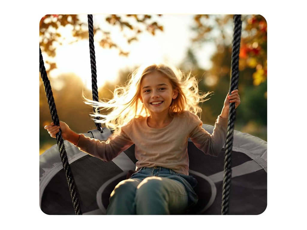 Ljuljačka na čeličnom okviru prekrivena mekom zaštitnom PE pjenom s višestrukim šavovima i debelim visećim užadima. Osigurava sigurnost, stabilnost i trajnost.