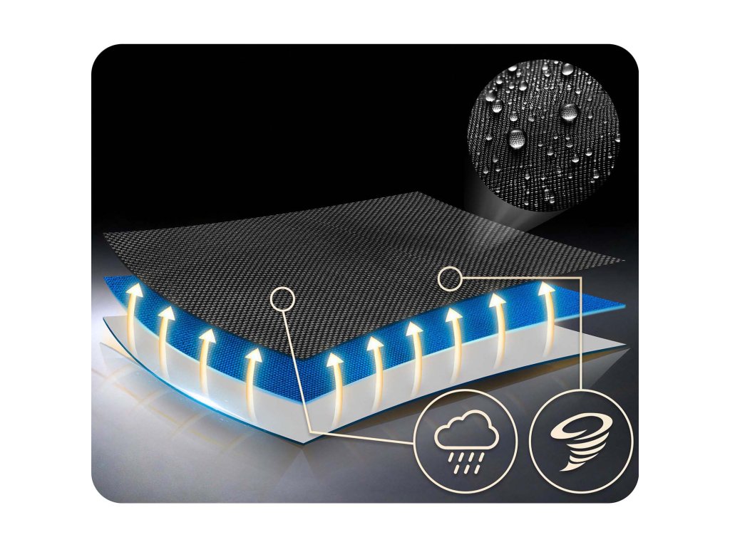 Poliester Oxford 600D, od kojeg je sjedište napravljeno, je vodootporan i lako za čišćenje.