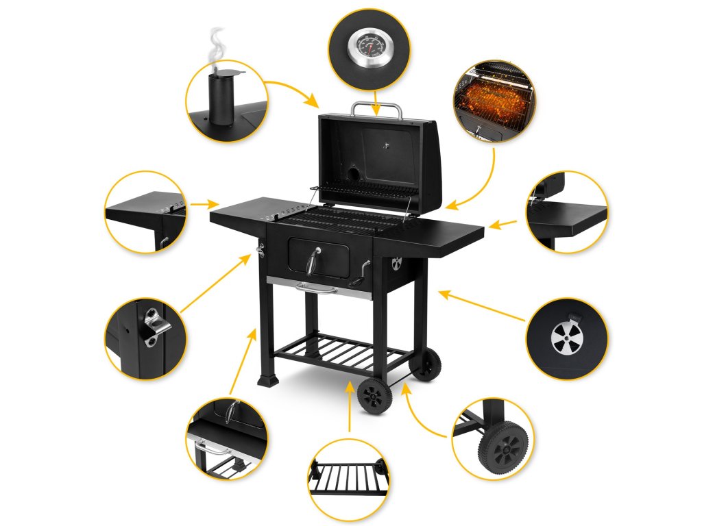 Poklopac: Omogućuje roštiljanje u različitim vremenskim uvjetima i omogućuje bolje održavanje konstantne temperature unutar roštilja, što je važno za duže kuhanje.