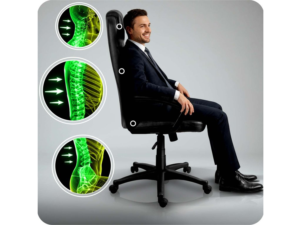 Oblikovani dio lumbalne pomaže održati ergonomsku sigurnu poziciju. Oblikovana naslonjač ravnomjerno raspoređuje pritisak, oslobađajući mišiće i sprečavajući bolove u području vrata.