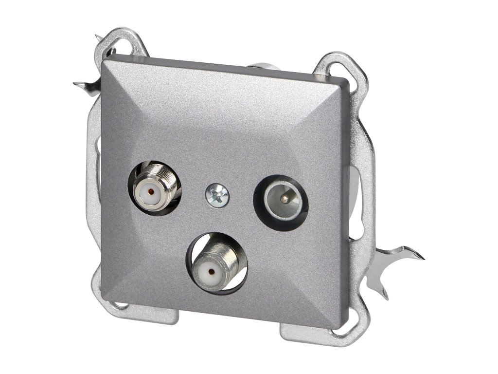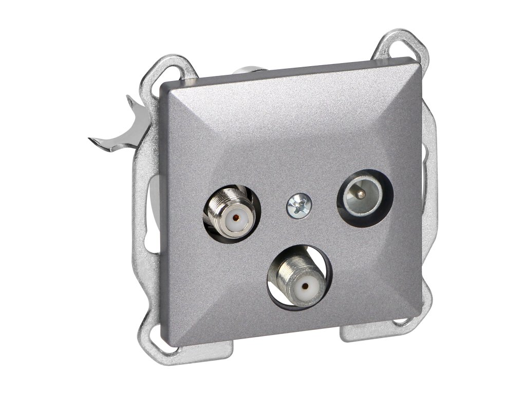 Modularna serija sa sustavom simetričnih okvirnih ploča (za 1-, 2-, 3-, 4-, 5-modula) omogućuje montažu proizvoda u horizontalnom i vertikalnom položaju. Moderni mehanizam brze spojnice (kabeli se povezuju izravno guranjem u tijelo) osigurava sigurnu i pouzdanu instalaciju i uklanjanje kabela. Utičnice su opremljene tradicionalnim vijčanim spojnicama. Unutarnji dizajn stezaljki jamči sigurno spajanje kabela od 0,75 mm do 2,5 mm . Čvrsta i robusna montažna ploča te visokokvalitetni samopovratni elementi omogućuju stabilnu i sigurnu instalaciju u kutiji. Posebni fleksibilni elementi olakšavaju postavljanje okvira u tijelo.RTV/SAT satelitska utičnica, dizajnirana za ugradbenu montažu. Omogućuje povezivanje radijskog i televizijskog prijamnika (digitalna ili analogna zemaljska TV) i satelitskog prijamnika. Treba se koristiti u unutrašnjosti (IP20).