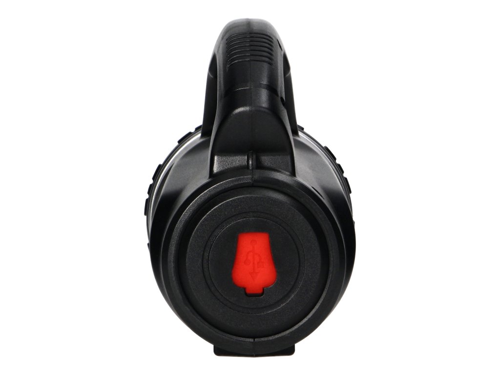 Ručna LED svjetiljka napajana baterijom koja se puni putem Micro USB porta je solidan uređaj namijenjen za kućnu i profesionalnu upotrebu. Učinkovita baterija kapaciteta 1200 mAh osigurava udobnost neprekidnog rada svjetiljke tijekom mnogo sati. Čvrsta konstrukcija od izdržljivih materijala obećava dugotrajno i udobno korištenje svugdje gdje je potreban jak izvor svjetlosti. Svjetiljka je multifunkcionalna, ima 4 načina rada: - glavno svjetlo - 100% i 25%, odnosno otprilike 4 i 8 sati svjetljenja pri punoj napunjenosti, - stroboskopski način rada, - donje osvjetljenje 100% - otprilike 8 sati svjetlosti pri punoj napunjenosti. Osim toga, otporna je na prskanje vode i vlagu (IPX3), opremljena ergonomskom ručkom na koju se lako može pričvrstiti npr. ruksak ili tehnička petlja na odjeći. Uporablja se i kao samostalno svjetlo - tijekom čišćenja na tavanu, kod nestanka struje, u kućnoj garaži ili na izletu izvan grada. Laka je, teži samo 215 g, tako da se dobro uklapa u set za preživljavanje. 3W osnovne diode generiraju svjetlosni tok od 165 lumena i osiguravaju vijek trajanja od oko 50 000 sati. Specijalna LED dioda pokazuje stanje baterije tijekom punjenja. Male dimenzije - 12 × 17 cm - omogućuju lako nošenje gotovo bilo gdje.Additional parameters