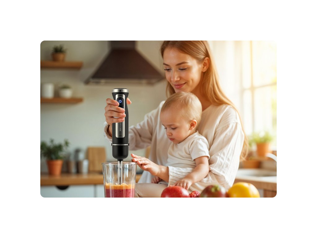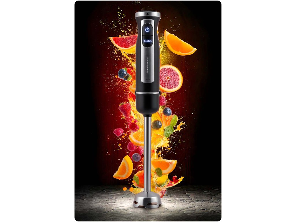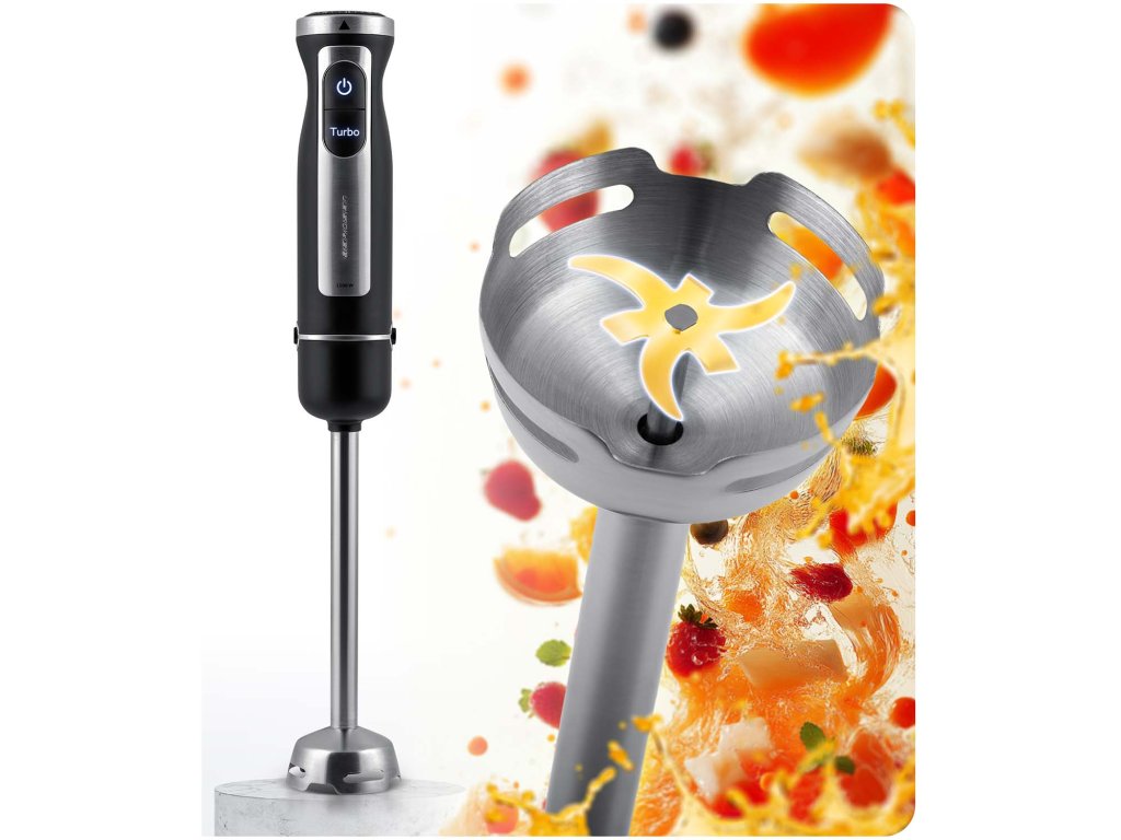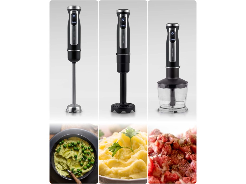 Super moćan blender 1500 W, s punim setom dodatne opreme ## Berdsen 375400 ## Odaberite snagu, stil i pouzdanost — odaberite blender stvoren za kulinarske majstore!## Prednosti proizvoda: ## ? Impresivna snaga s TURBO funkcijom — miješa najtvrđe sastojke. ? Pouzdan i efektan titanski nož — preciznost i izdržljivost. ? Bogati set višenamjenske dodatne opreme — kompletna podrška u kuhinji. Čak 6 različitih funkcija! ? Izvrsna kvaliteta i elegantan dizajn — elegantan izgled premium čeličnih detalja i mat finiš. ## ????? Snažan titanijski nož GOLD ## Titanijski nož GOLD ističe se izuzetnom tvrdoćom i otpornošću na koroziju, što rezultira znatno dugotrajnijim vijekom trajanja blendera. ## Zahvaljujući visokoj otpornosti titana, nož se lako nosi s najtvrđim sastojcima, omogućujući brzo i učinkovito blendanje. Glatka površina noža olakšava čišćenje i održavanje higijene, osiguravajući nesmetano korištenje svakodnevno. ## Osnovni dodatak za blendanje ## Služi za miješanje i drobljenje sastojaka u glatku masu. Idealno za pripremu krem juha, umaka, smoothieja ili povrtnog pirea. ## Dodatak za miješanje/pire ## Namijenjen je za gnječenje i miješanje mekih sastojaka, poput krumpira, batata ili drugog povrća. Pomaže u postizanju ujednačene konzistencije pirea. ## Sjeckalica ## Namijenjena je za sjeckanje i mljevenje tvrdih sastojaka, poput orašastih plodova, luka, mesa ili začinskog bilja. Omogućuje brzo pripremu nadjeva, pasti i sitno sjeckanih sastojaka. ## Dodatak za blendanje s čašom ## Služi za miješanje i drobljenje sastojaka u glatku masu. Idealno za pripremu koktela, smoothieja, umaka i krem juha. Dodatak za miješanje ## Namijenjen je za izradu tijesta, miješanje sastojaka za kolače te pripremu masa ujednačene konzistencije. Dodatak za miješanje/žičana pjenjača ## Služi za miješanje šlaga, bjelanjaka, krema i laganih kolača, poput biskvitnih. ## Izuzetno moćan motor — čak 1500 W!## Snažan motor snage 1500 W, s turbo funkcijom, osigurava brzo i učinkovito blendanje, čak i kod najtvrđih sastojaka. ## Turbo funkcija omogućava trenutni porast snage, olakšavajući drobljenje ili miješanje velikih količina sastojaka u kraćem vremenu. ## 25 razina brzine i Turbo gumb. ## Blender nudi čak 25 razina brzine s glatkom regulacijom te dodatni TURBO mod, osiguravajući maksimalnu kontrolu i brzinu blendanja. ## Tehnički podaci ## Nazivna snaga: 1500 W ## Maksimalna brzina okretaja: 17.250 okretaja/min ## Napajanje: 220-240 V ## Materijal: čelik i plastika (BPA free) ## Zaštita od nepravilnog sastavljanja ## Zaštita od pregrijavanja ## Titanijski nož ## Kapacitet posude s poklopcem: 800 ml ## 25 razina brzine ## Dužina kabela: 1,3 m ## Neto težina: 1,55 kg ## Certifikati: CE, REACH, ROHSDodatni parametri