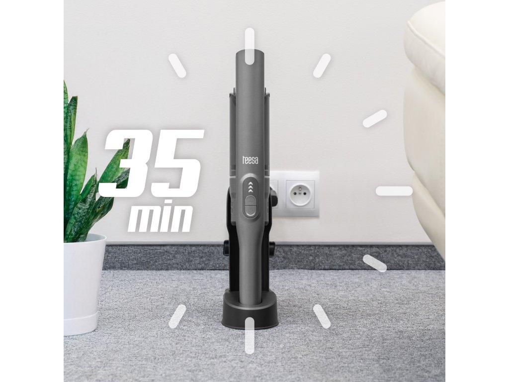 Snažna baterijaLi-ion baterija kapaciteta 2200 mAh pruža 35 minuta neprekinutog rada. Tako duga radna autonomija omogućuje usisavaču Teesa da bez problema očisti auto ili bilo koje površine u vašem domu.