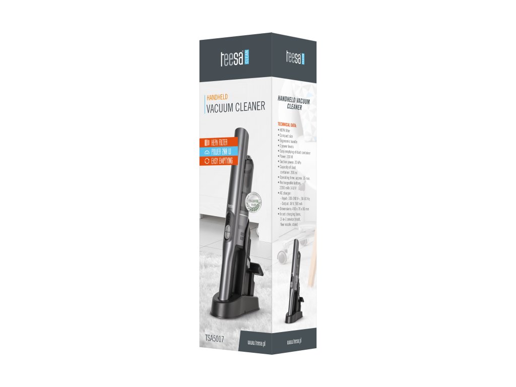 Mini ručni usisivač Teesa je kompaktno rješenje za brzo čišćenje. Idealan je za uklanjanje prašine, mrvica i životinjske dlake iz teško dostupnih mjesta u kući i autu. Zahvaljujući prijenosnoj konstrukciji i snažnom akumulatoru uvijek je spreman za rad.