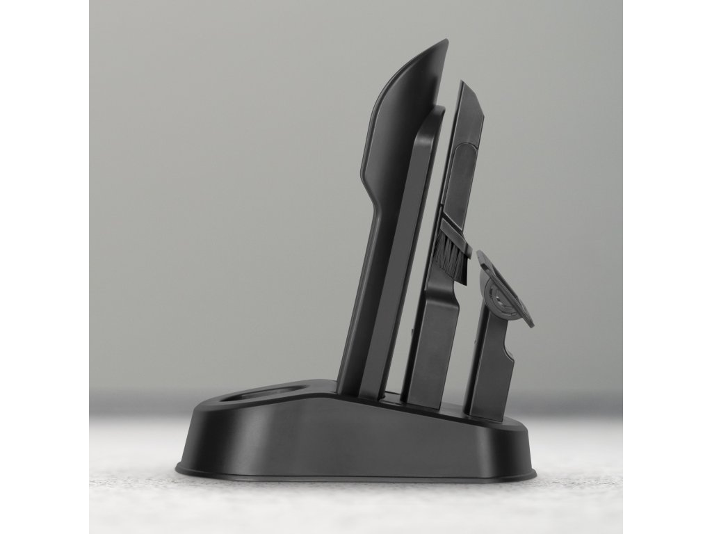 Radna autonomija: cca 35 min.## Vrijeme punjenja: 4,5 sati## Baterija: 2200 mAh 14,8 V## Napajanje:## ulaz: 100-240 V~, 50-60 Hz## Izlaz: 18 V, 500 mA## Dimenzije: 450 x 70 x 86 mm## U pakiranju: baza za punjenje, 2u1 nastavka za proreze, podna nastavka, podloga##