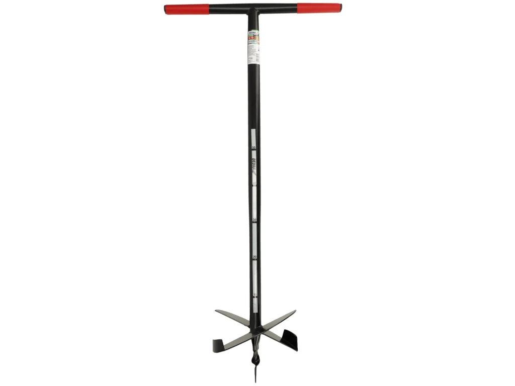 Ručna zemaljska bušilica, poznata kao zemaljski svrdlo, koristan je alat svugdje gdje je potreban mali, ali duboki iskop. Posebno će je cijeniti oni koji trebaju napraviti red rupa za kolce, stupove itd. Jednostavna konstrukcija bez spojeva i spojnih elemenata olakšava njezinu uporabu. Jednostavna konstrukcija nema pričvrsnih elemenata, što alatu daje vrlo visoku čvrstoću pri bušenju čak i u tvrdo, zbijeno tlo. Profilirani odvojivi noževi učinkovitije prodiru u tlo uz manji otpor, čime se zemlja iz rupe podiže prema gore. Kaljena glava od tvrde borove čelika osigurava otpornost na mehanička oštećenja. Kaljena glava od tvrde borove čelika otporna je na mehanička oštećenja. T-ručka završena je gumiranom oblikovanom ručkom za veću udobnost.