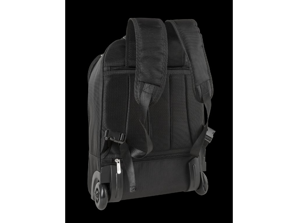 Ruksak za prijenosno računalo Kruger&Matz To GoAko vaš posao zahtijeva česta poslovna putovanja ili sastanke, ruksak Kruger&Matz To Go trebao bi postati vaš nezamjenjivi suputnik. Unutarnji aluminijski okvir s uvlačivom ručkom u kombinaciji s odvojivim i sklopivim naramenicama i gumenim kotačićima brzo pretvara ruksak u praktičan kofer u koji možete spremiti sve potrebne stvari. A ako tijekom putovanja odlučite da je udobnije nositi stvari u ruksaku, prljave kotačiće možete prekriti posebnim poklopcem skrivenim u donjem dijelu.