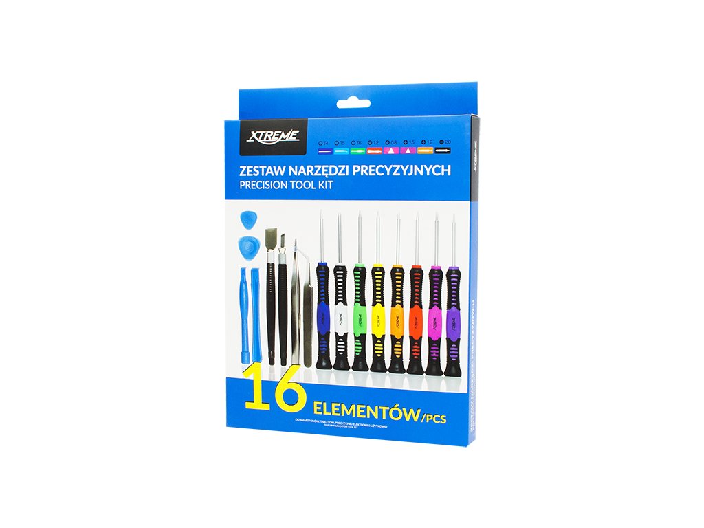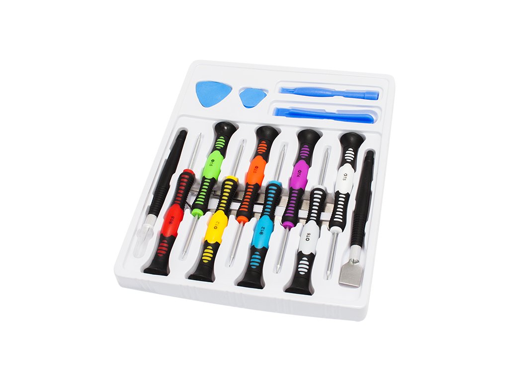 Set preciznih odvijača s dodatnim alatima za različite servisne aktivnosti. Odvijači imaju udobnu i protukliznu dršku.