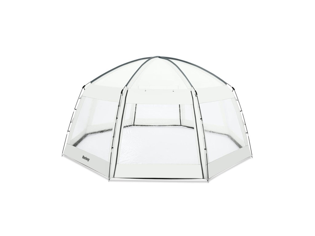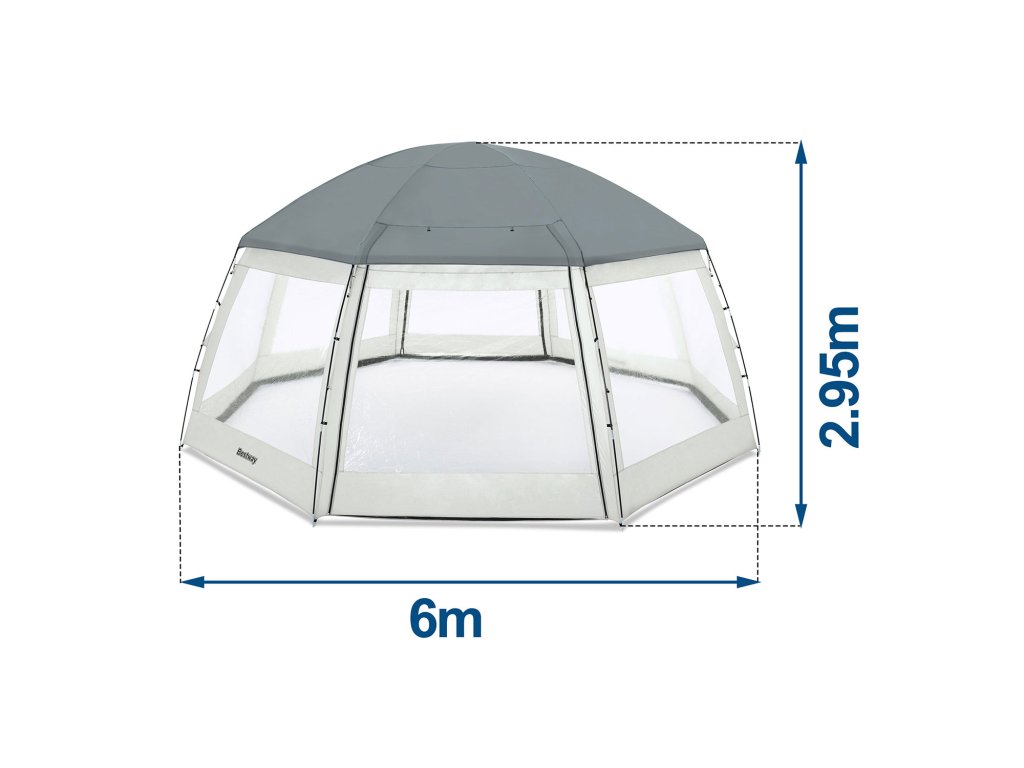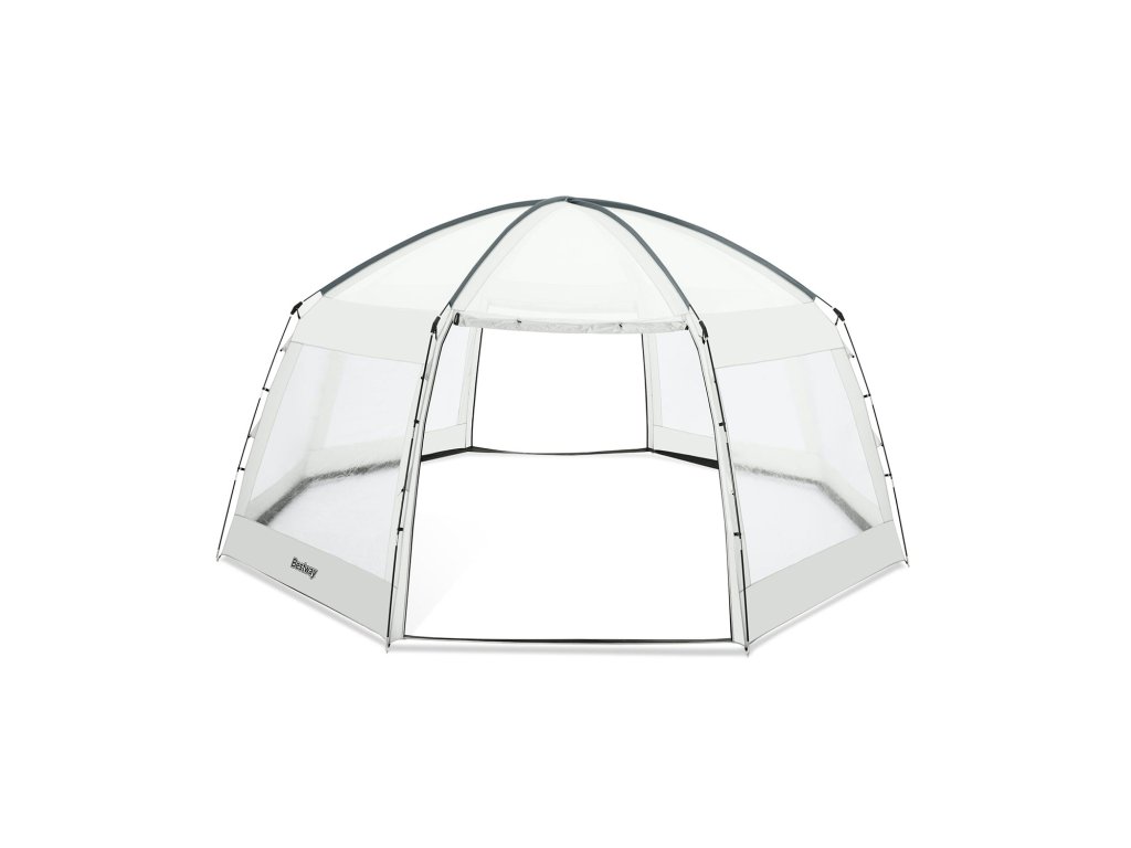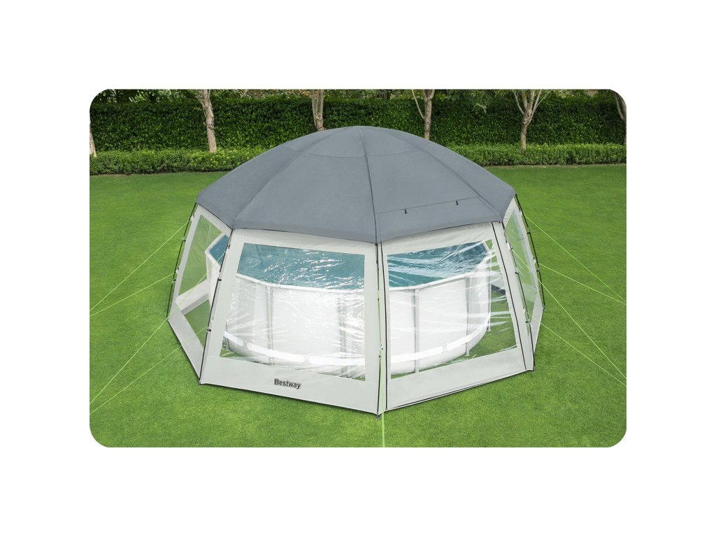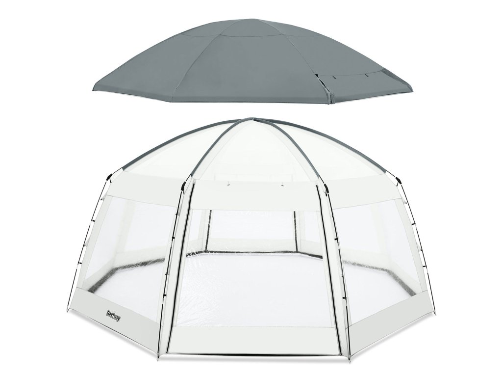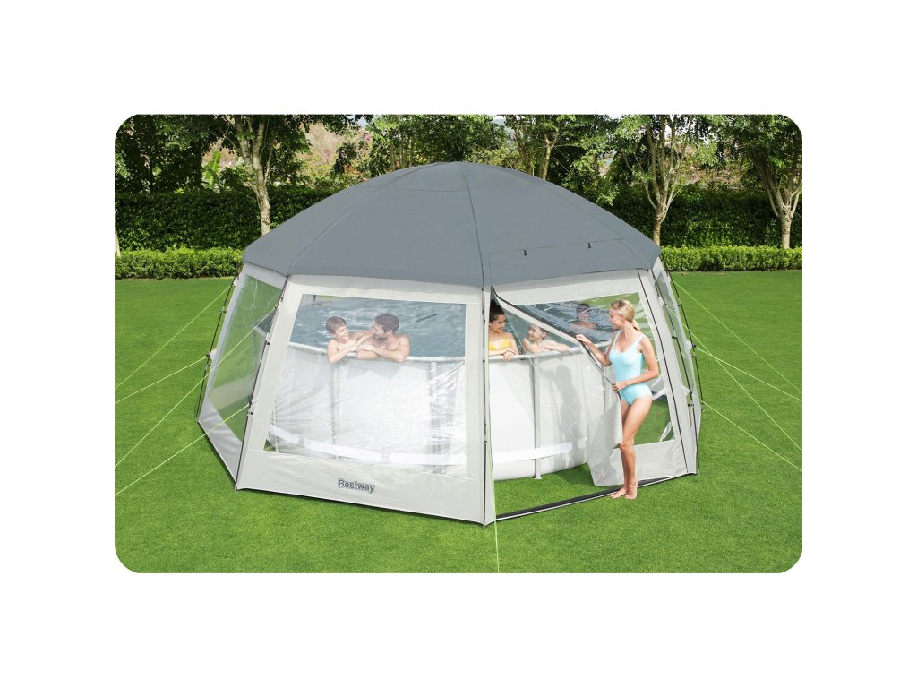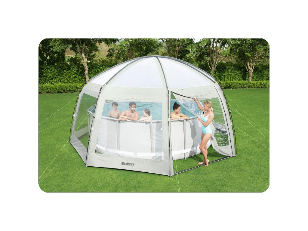 Još veći komfor pri korištenju bazena s posebnim šatorom Bestway - u vrućim danima šator će biti izvor sjene, zahvaljujući mrežicama zaštitit će od komaraca i drugih insekata, tijekom kiše omogućit će udobno korištenje bazena ili jacuzzija, usporit će gubitak topline vode.